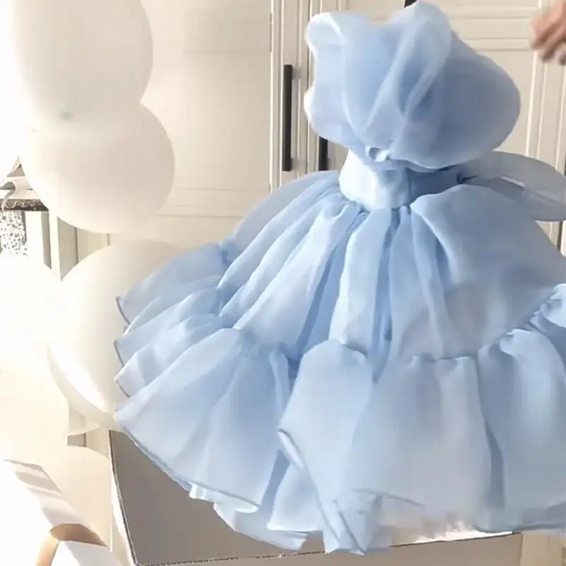 Girls Princess Dress New Summer Korean-style Western-style High-end Baby Girl Blue Crocheted Corduroy Sweet Summer Dress