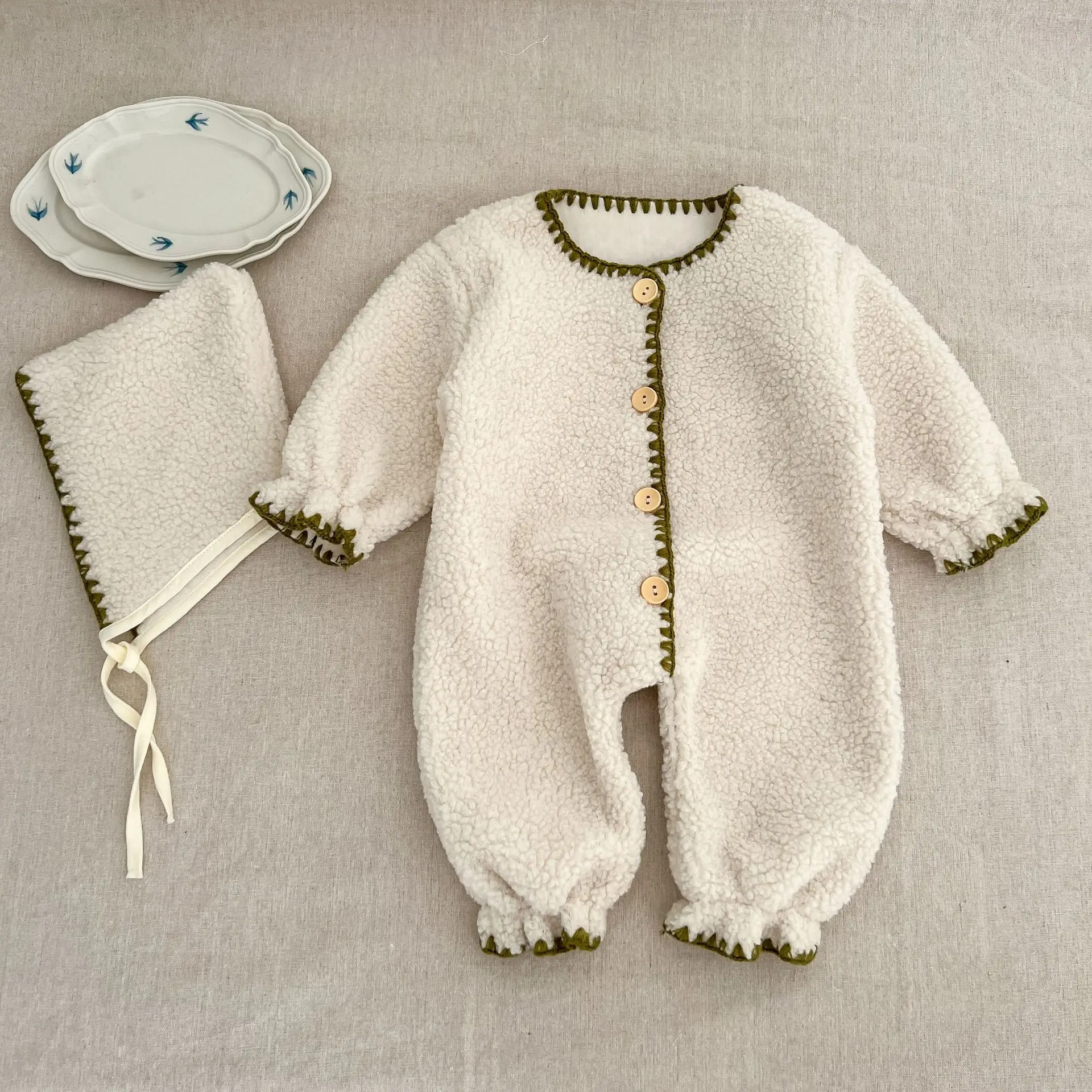 Baby Jumpsuit Winter 2023 New Plus Polar Fleece Solid Boys Girls Shell Line Western Style Long Climbing Suit