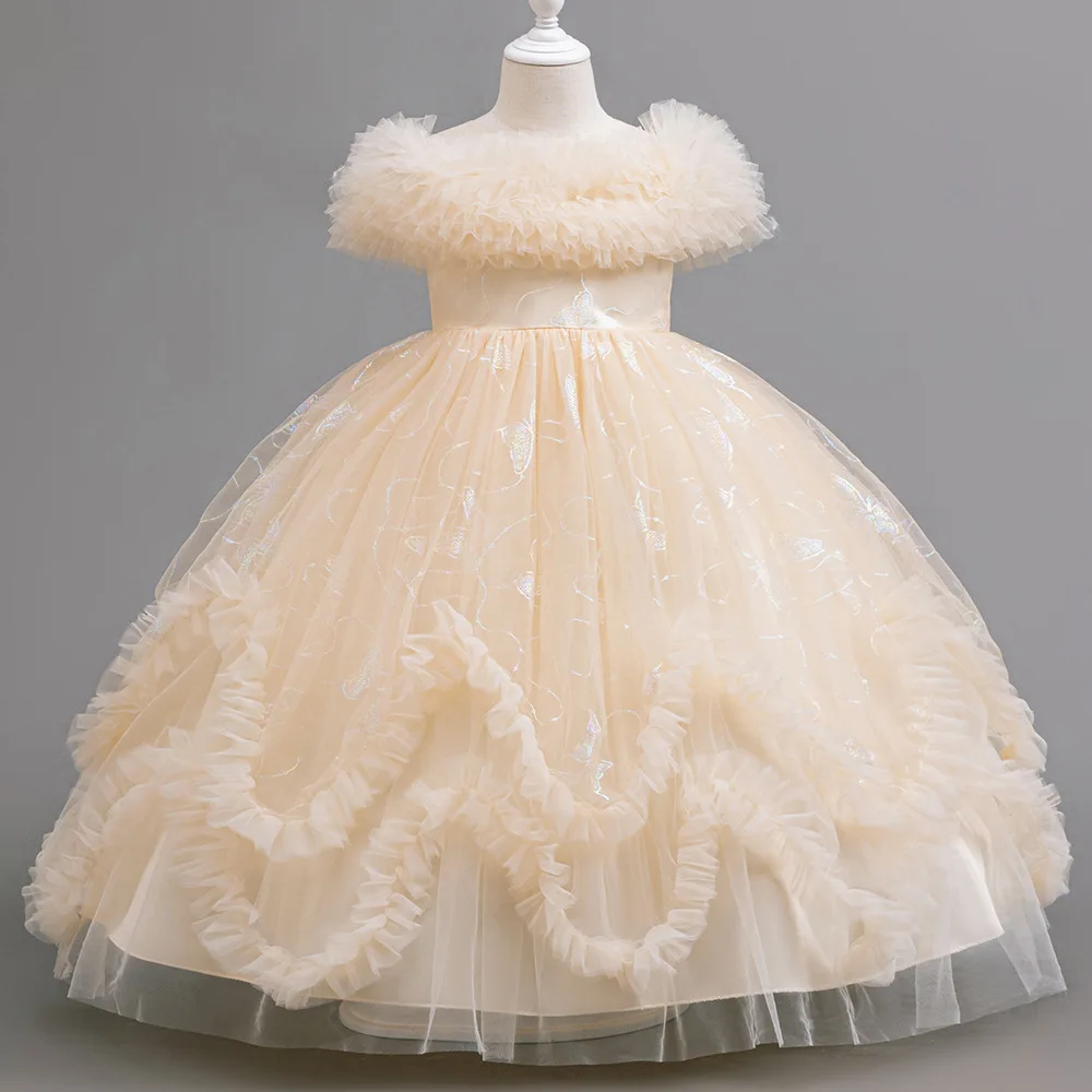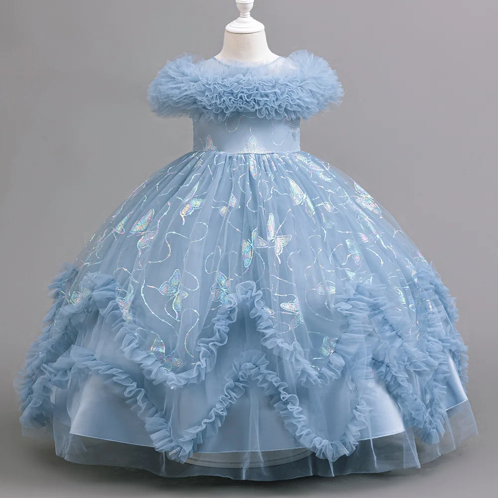 Girls' Formal Fluffy Gauze butterfly Hot Stamping Print Gorgeous Elegant Birthday Party Performance Princess Dress