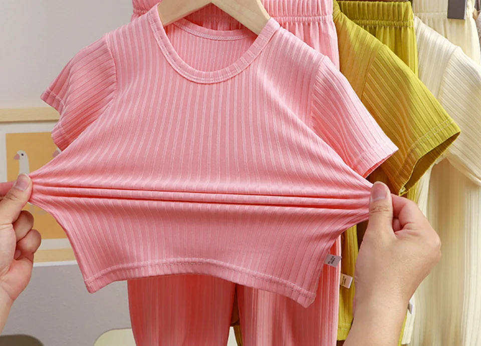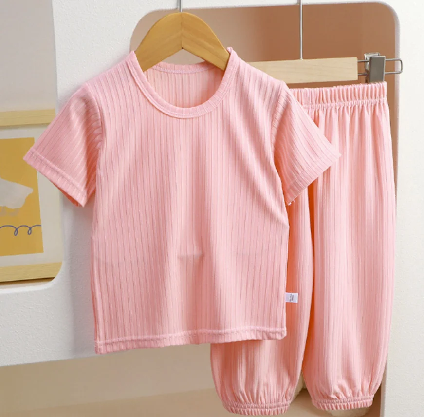Toddler Boys Girls Casual Cartoon 2 Piece Pajama Set for Kids Spring Autumn Summer Short Sleeve Long Pants Sleepwear