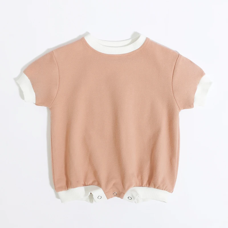 95% Organic Cotton Popular Baby Jumpsuit Customizable Embroidered Contrast Newborn Baby Romper Short Sleeve Baby Sleeping Bag
