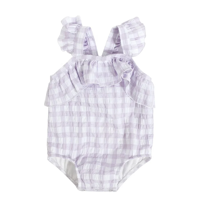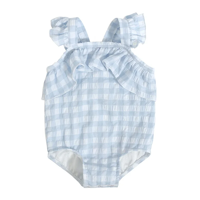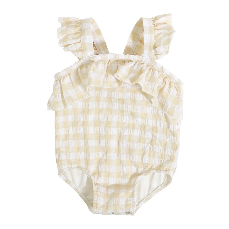 Lovely Summer Frill Baby Girl Romper Checkered Sleeveless Baby Bubble Romper Ruffle Jumpsuit