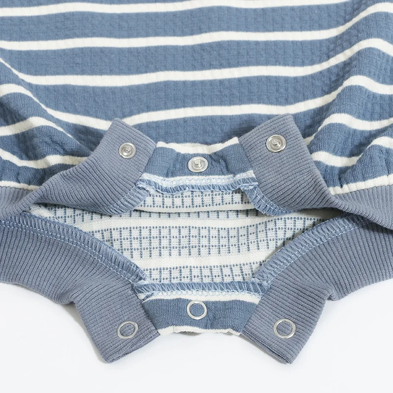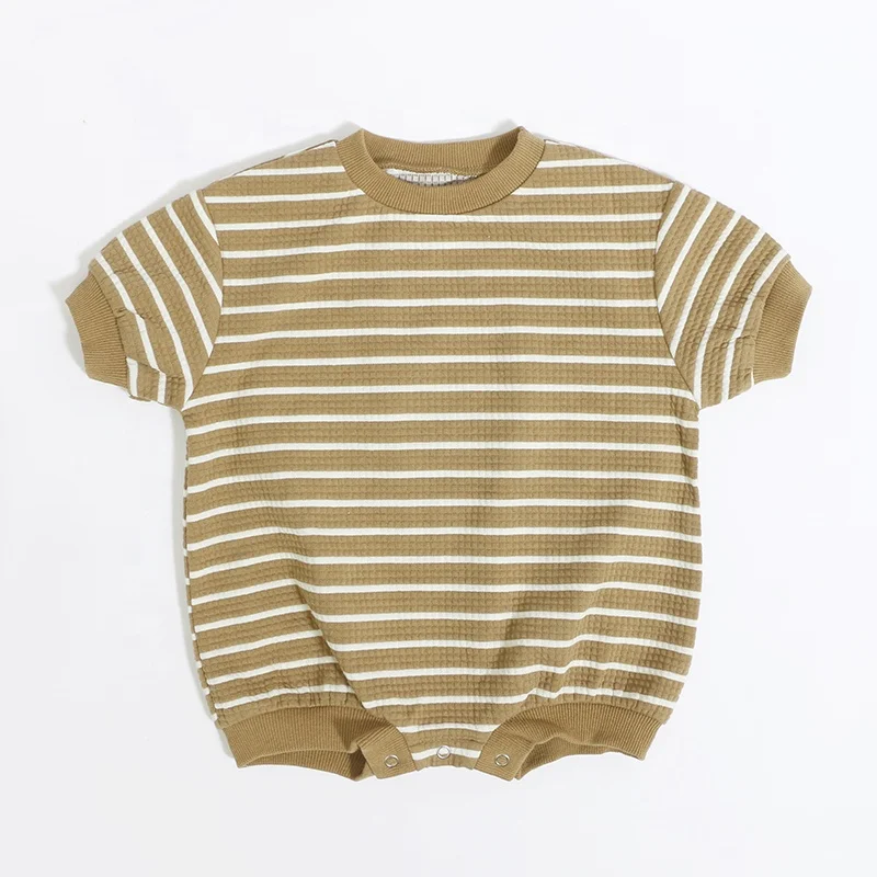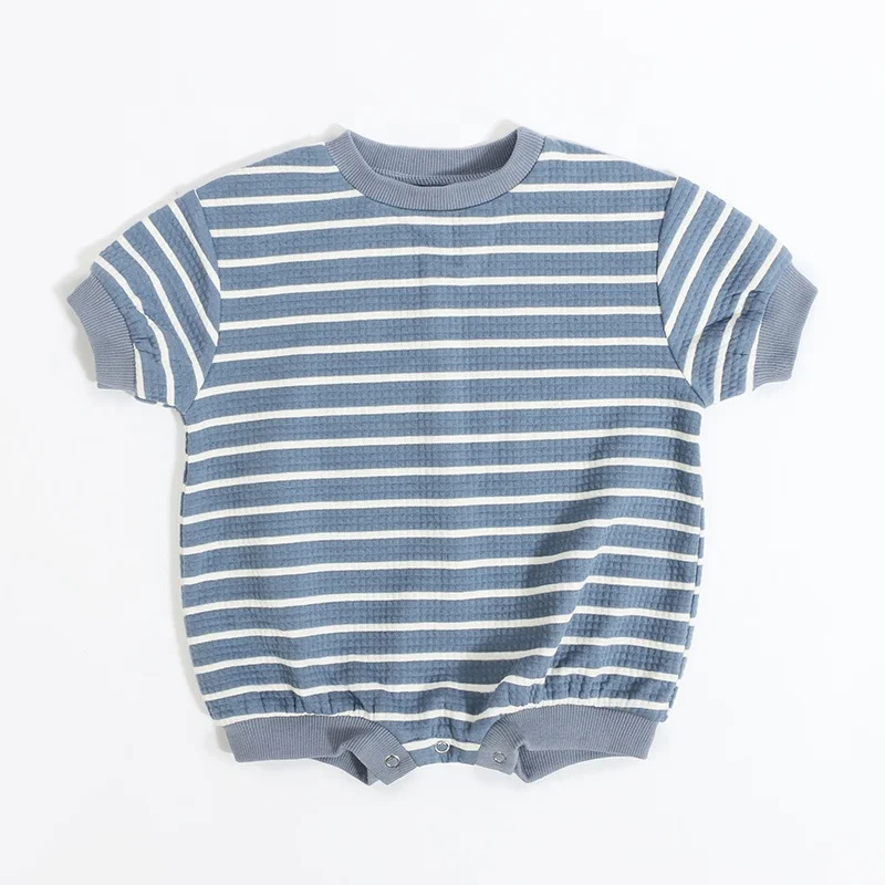 Gender Neutral Knit Cloth Baby Bubble Rompers Striped Short Sleeve Kids Clothing