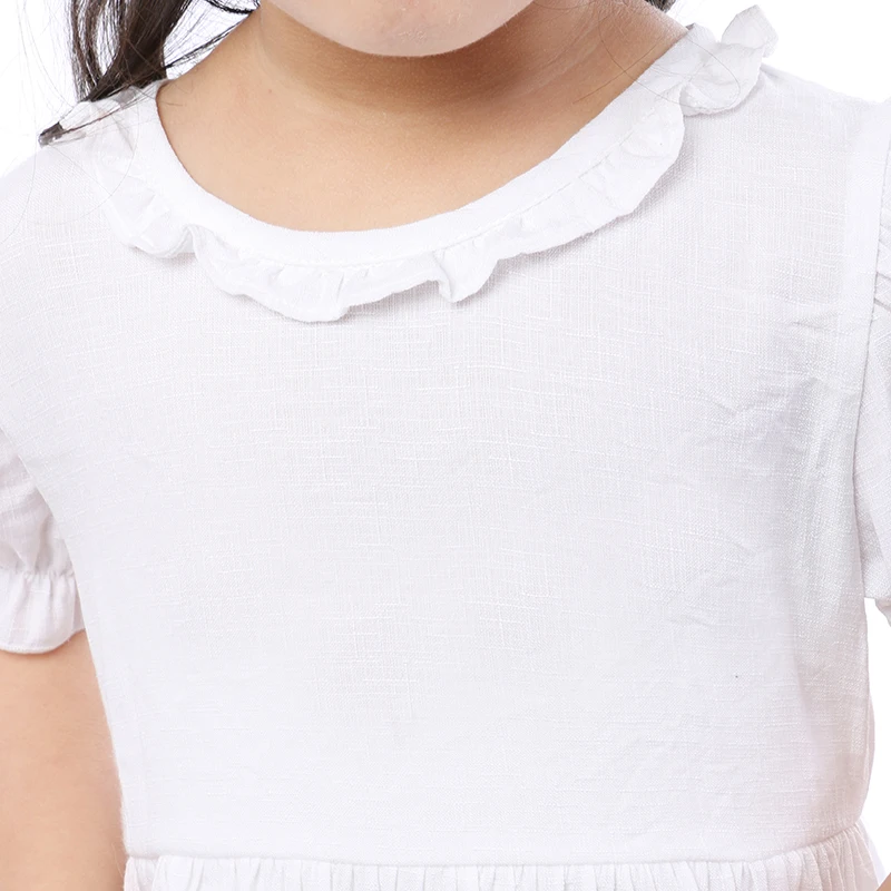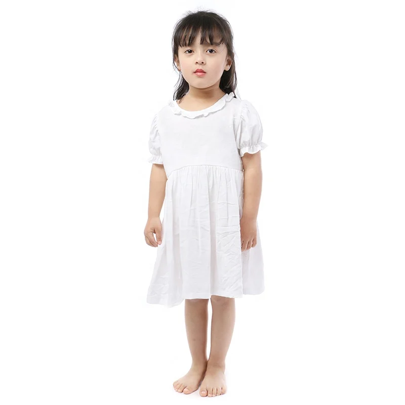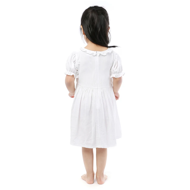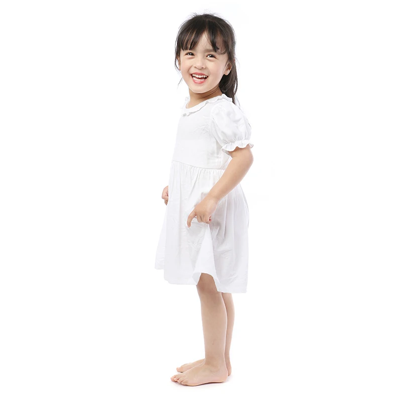 Simple Design Children 100% Cotton Clothes Girl Solid White Puff Sleeve Summer Baby Dress