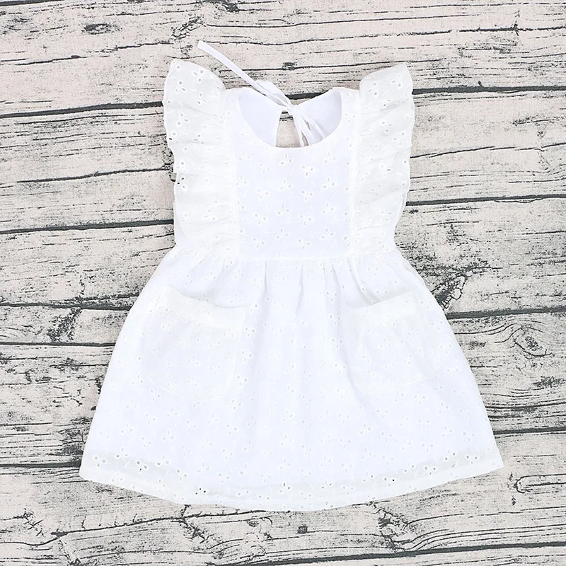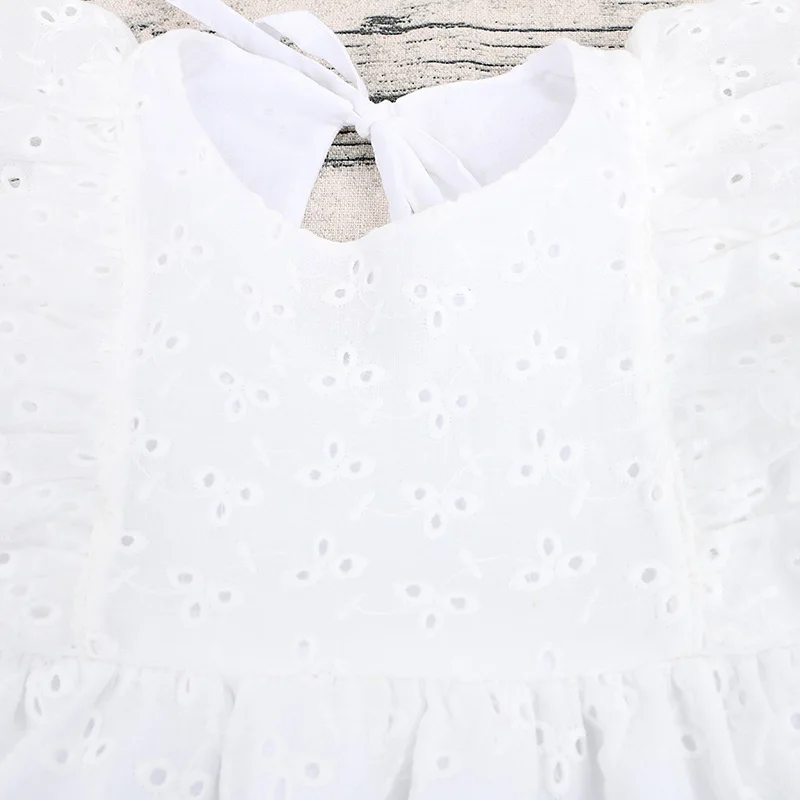 Fashion Baby Girl Clothes Puff Sleeve Floral Lace Dress White Baby Dresses Summer