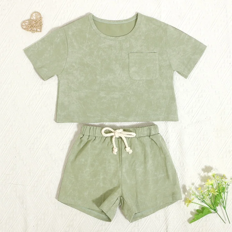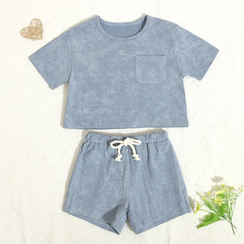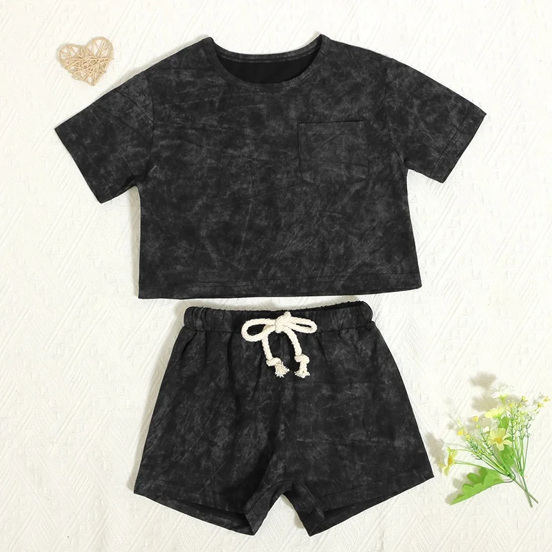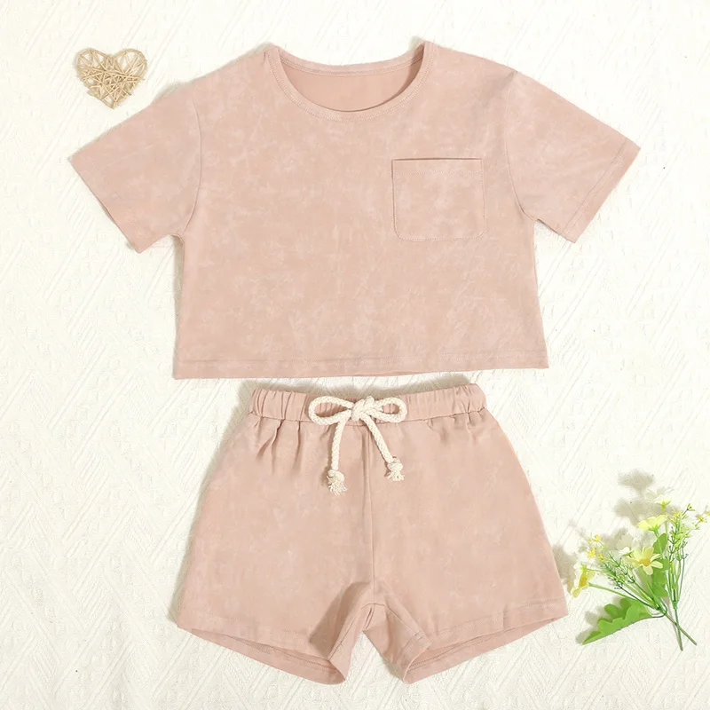Hot Sale Summer Baby Outfits Batik Print Short Sleeve Kids Sweatsuit Sets with Pockets