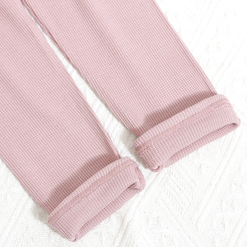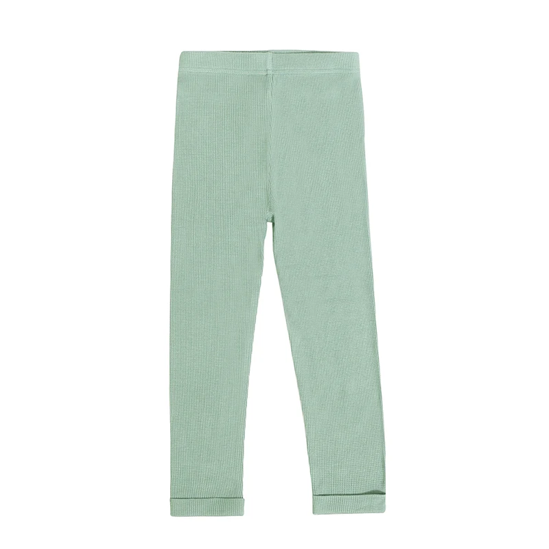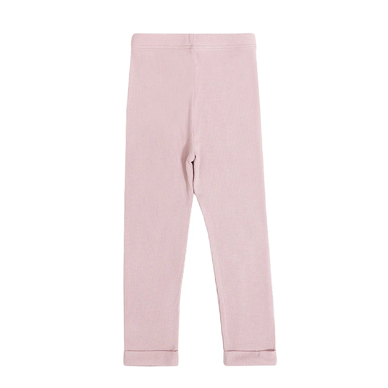 New Arrival Autumn Bamboo Waffle Children Leggings Stretchy Knitted Solid Color Girl Kids Long Pants