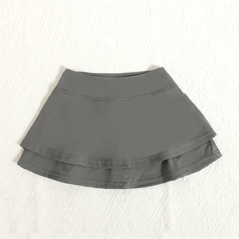 Wholesale Design Kids Girl Skirt With Double-Layered Hem A-Line 4-Way Stretch Nylon Children Dress for Sports Baby Yoga Dress