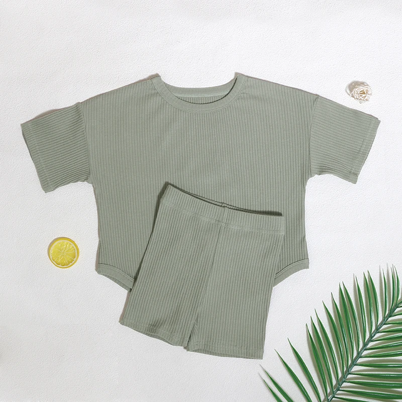 New Arrivals 2026 Design Kids Clothes Short Sleeve Solid Casual Baby Clothing Sets Boy 6-12 Months