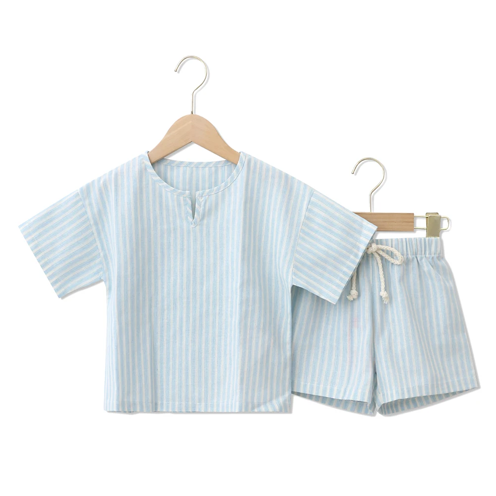 High-End Kids Two-Pieces 100% Cotton Short Sleeves Drawstring Design Children Summer Clothing Sets