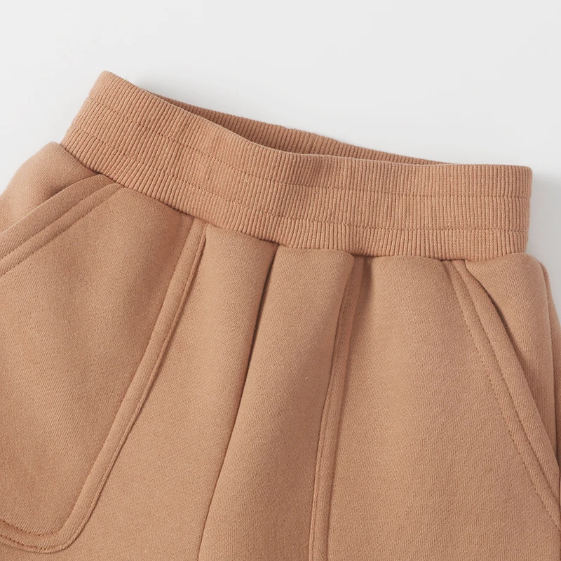 Wholesale Custom Logo Fall Winter Thick Long Sleeve Solid Color Hoodie Warm Sweatsuit Kid Set