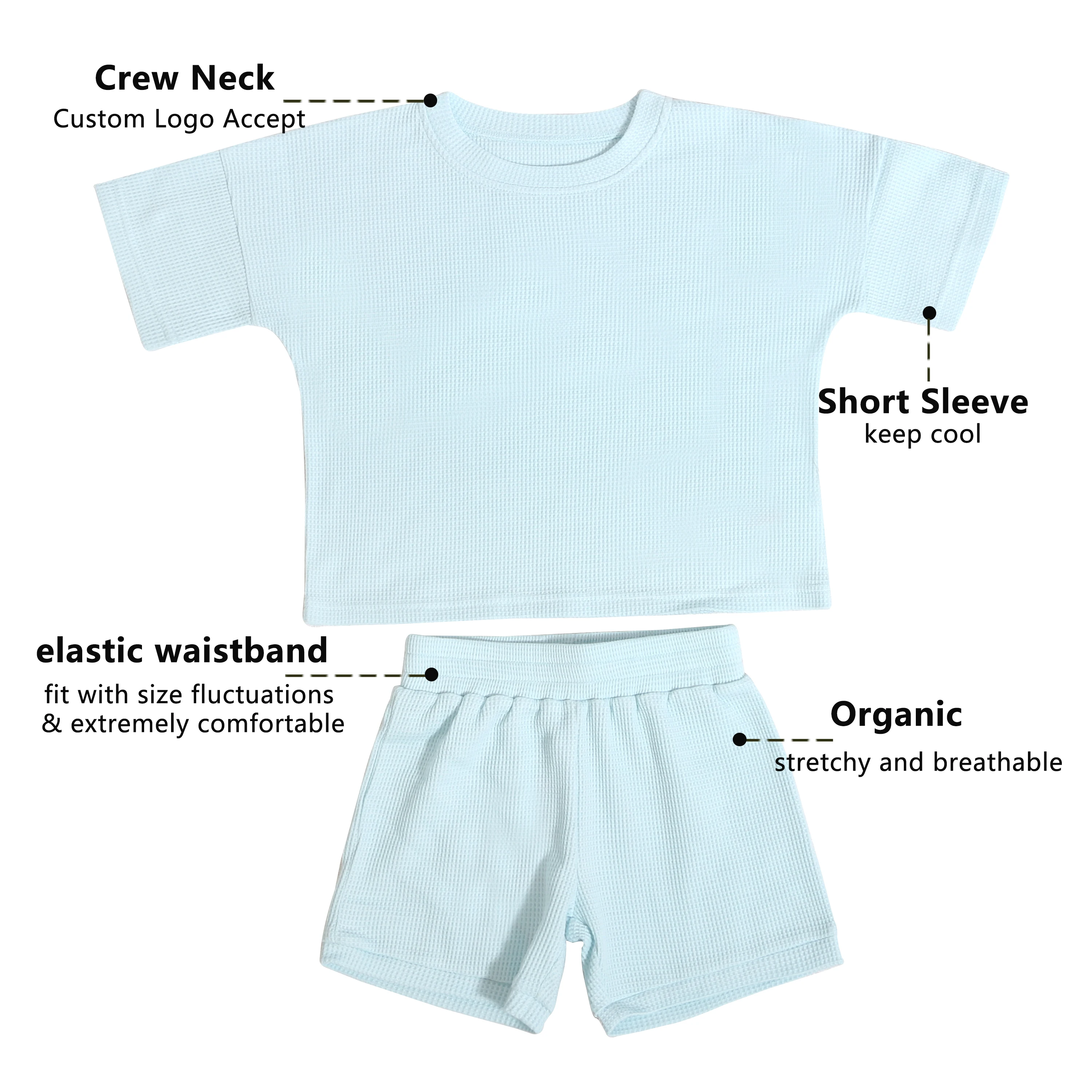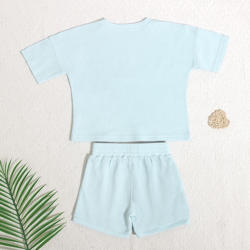 New Designer Trendy Custom Fashion Children Crew Neck Tops Elastic Waistband Shorts Cool Kids Clothing Sets