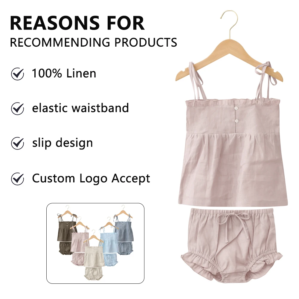 Direct Manufactory Price Sleeveless Casual Children Suits Solid 100% Linen Summer Kids Sets With Button