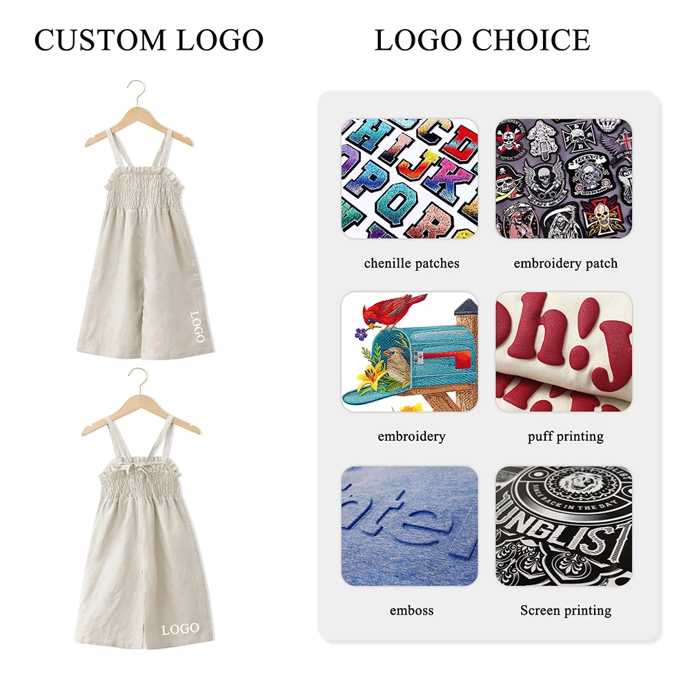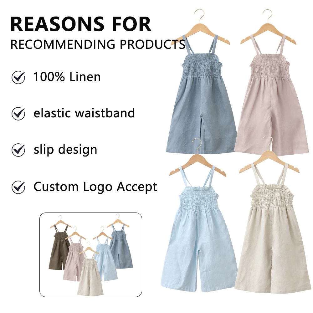 Latest China New Model Summer Baby Romper 100% Linen Customized Logo Slip Design Children Jumpsuit