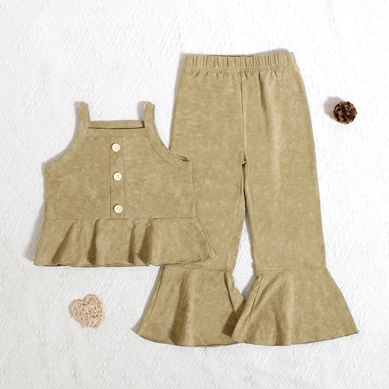 Super Quality Summer Terry Batik Cotton Toddler Two-Pieces Sleeveless Slip Design Tops Children Girls Sets