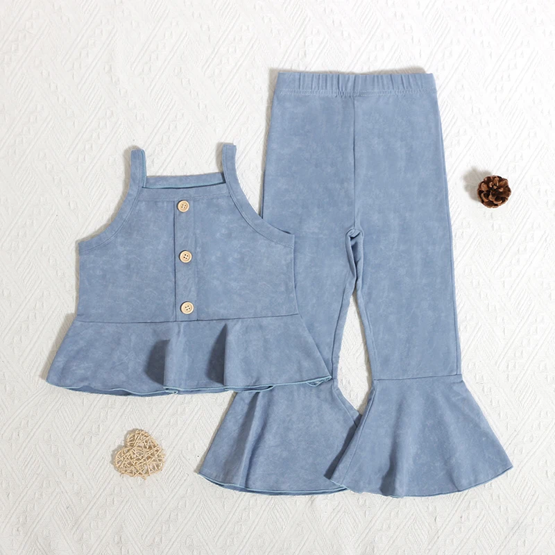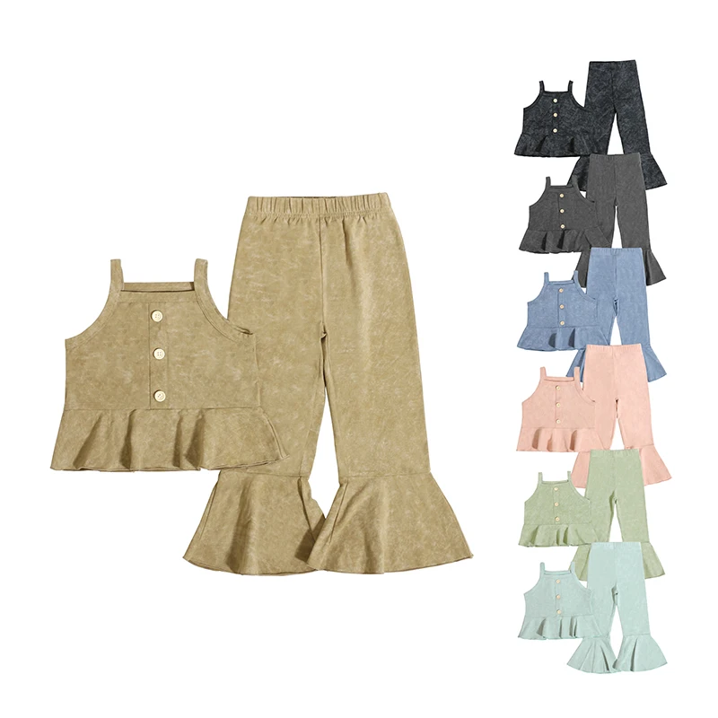 Professional Supplier Spring Summer Sleeveless Solid Color Tops and Flared Pants Kids Clothing Sets