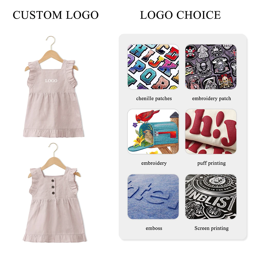 New Innovative Product Children Summer Square Collar Girls Dresses With Lovely Buttons Sleeveless Baby Skirt