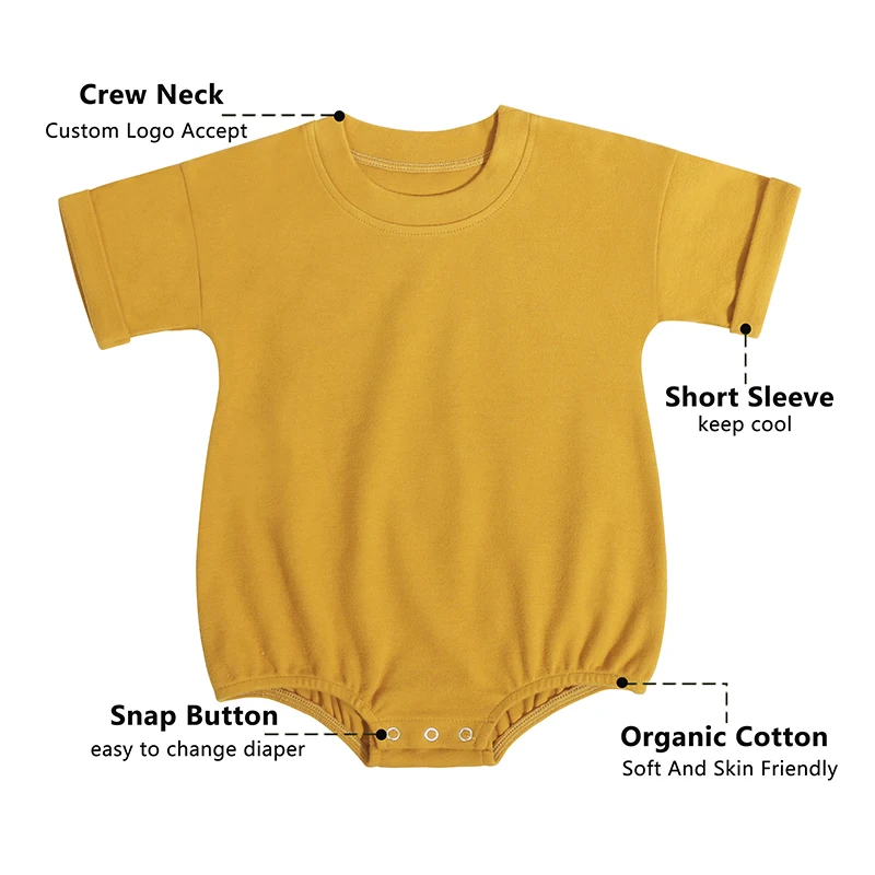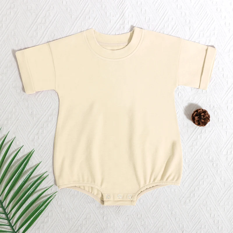 Super Quality Summer Children Bodysuit Short Sleeve Solid Color 96%Organic Cotton 4% Spandex Baby Romper