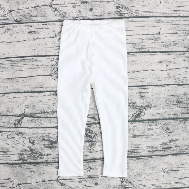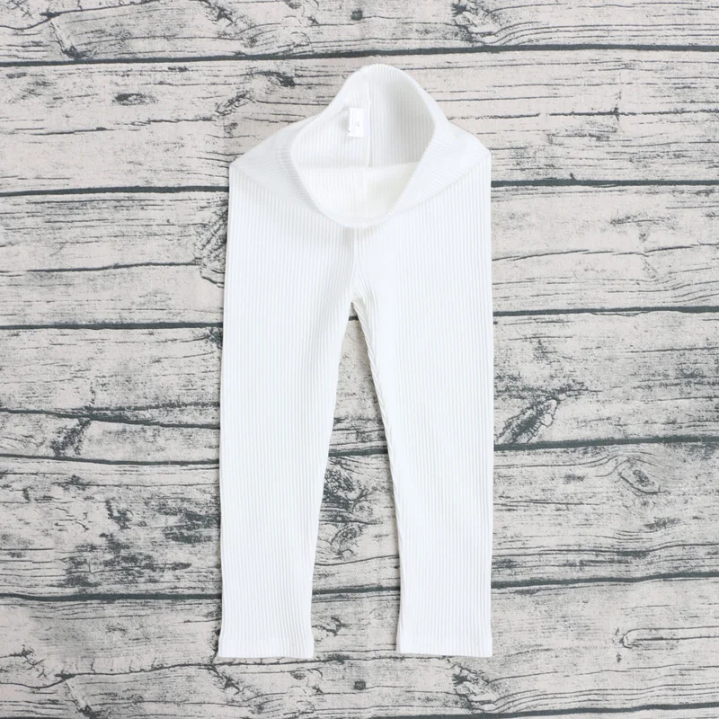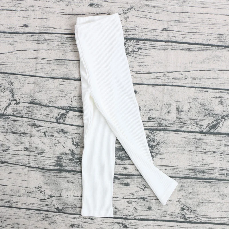 Hot Sale Baby Pants Long Trousers Pure White Ribbed Cotton Kids Pants