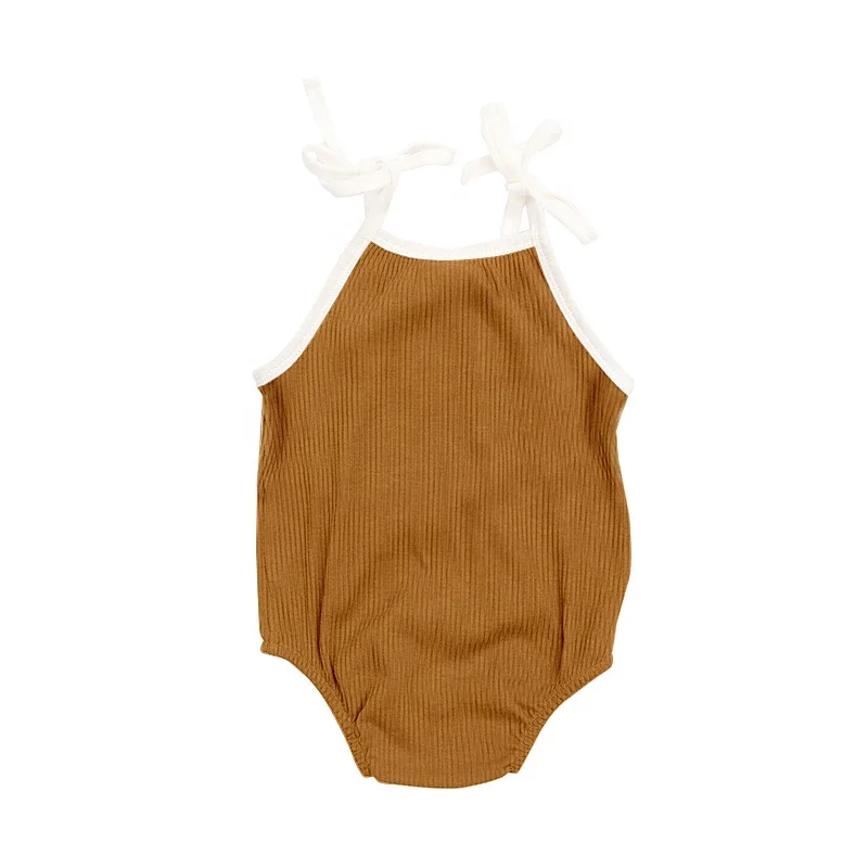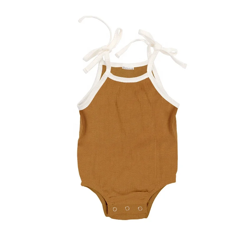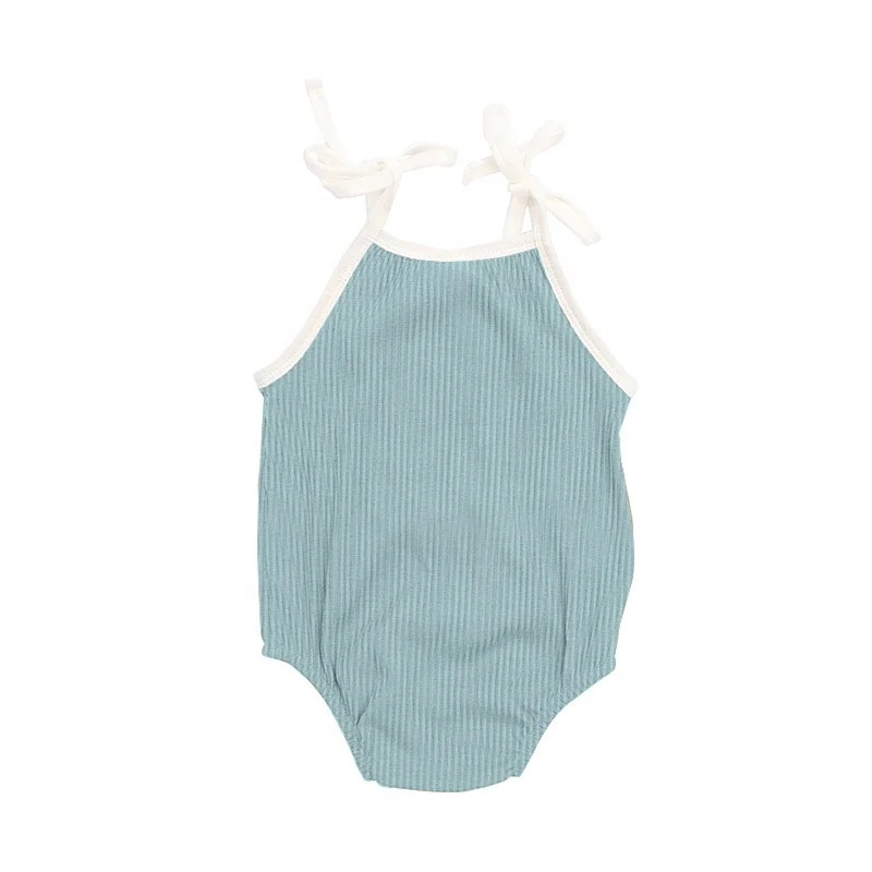 Simple Design Ribbed Cotton Summer Sleeveless Newborn Baby Girls' Rompers Clothes