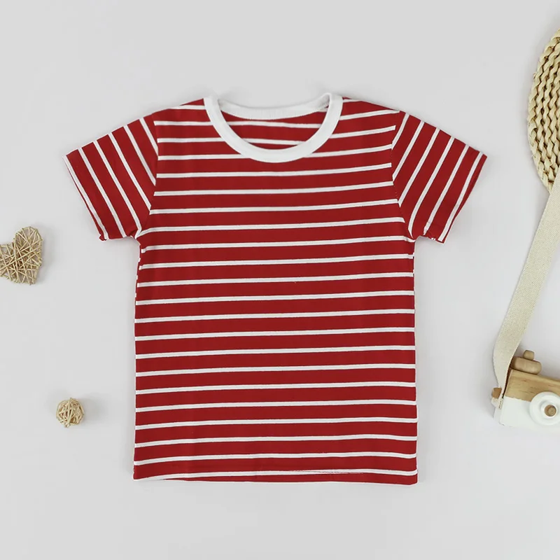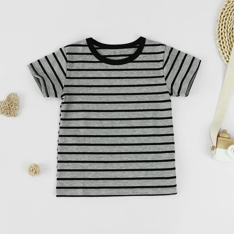 Cotton-Blend Black & White Stripe Round Neck Short-Sleeve Boys' Toddler T-shirt for Daily Wear & Play