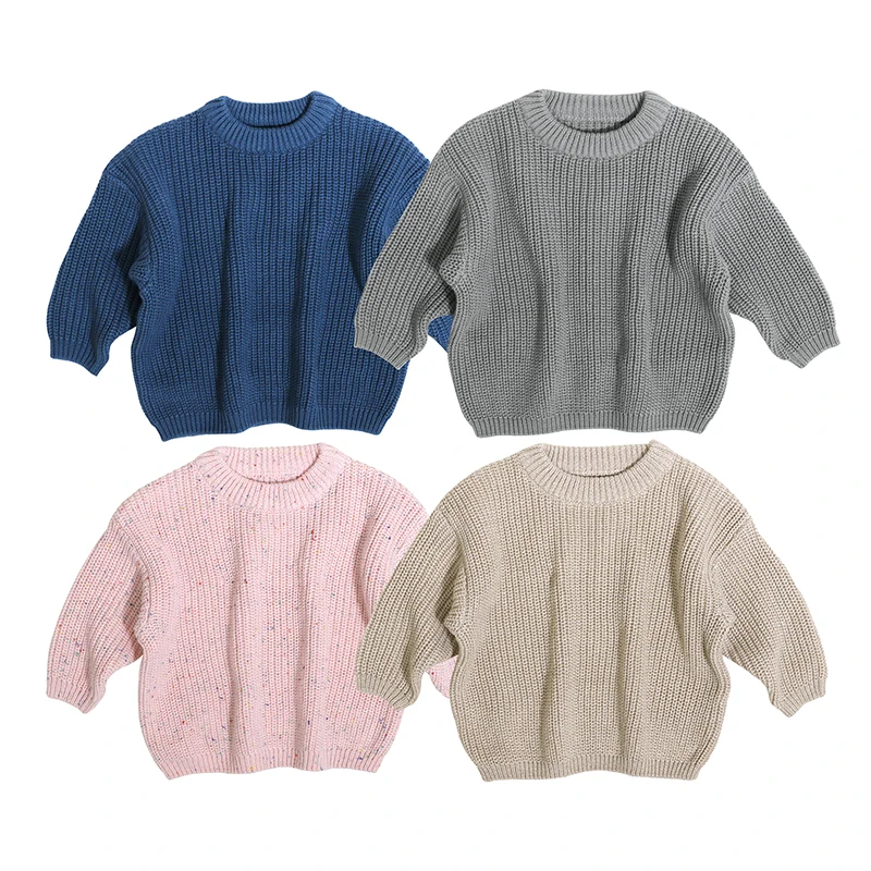 Wholesale Low Price Knit Sweater Infant Knitwear Solid Color Long Sleeve Pullover Basic Warm Baby Sweater