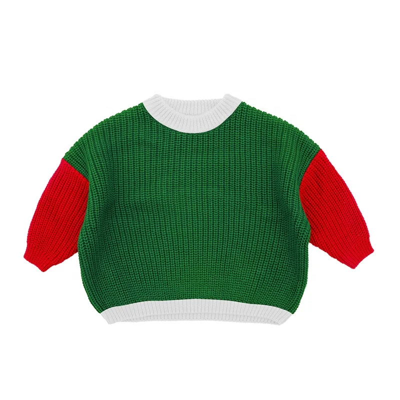 Christmas 100% Cotton Baby Sweater Customized Kids Jumper Patchwork Top