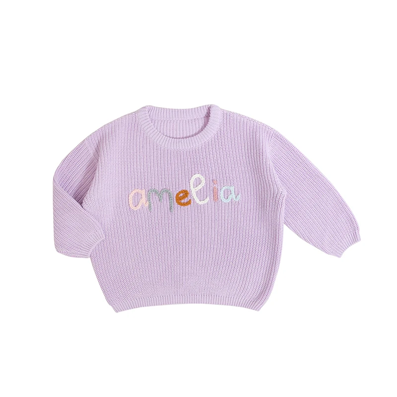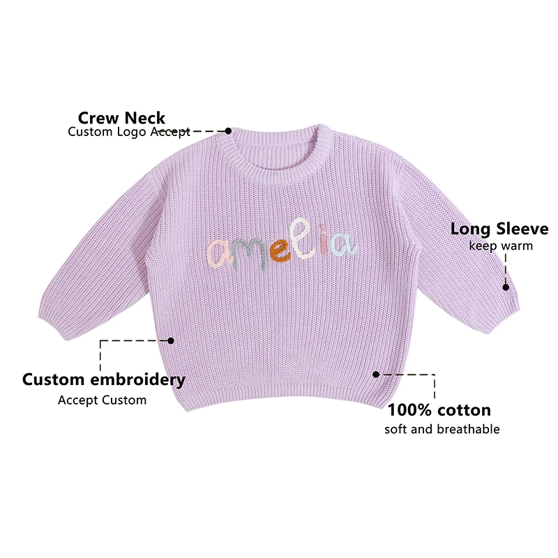Manufacturer Custom Embroidery Wholesale Boutique Newborn Girl Clothing Long Sleeve Solid Color Winter Knitting Baby Sweaters