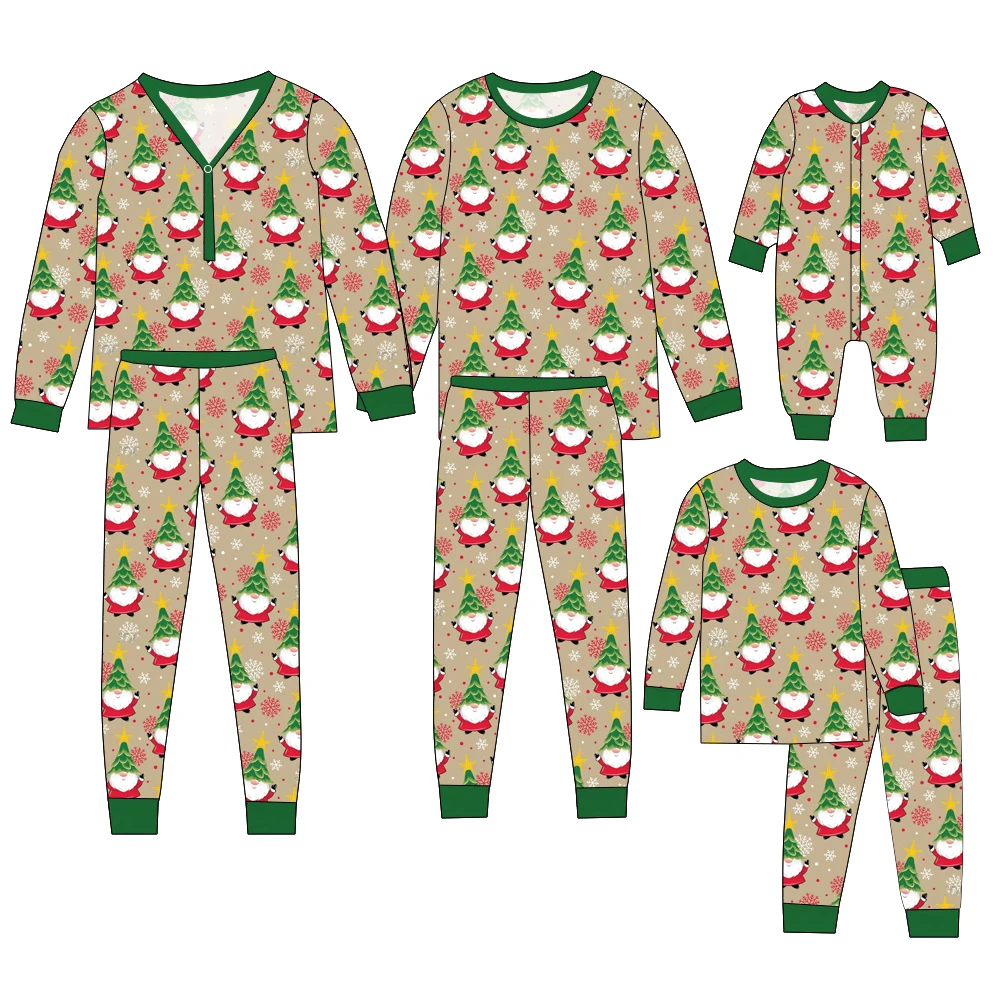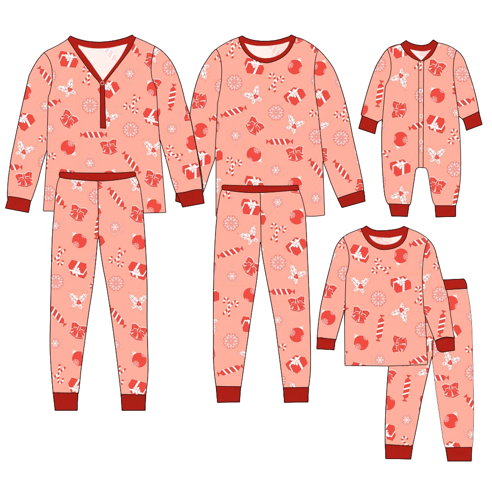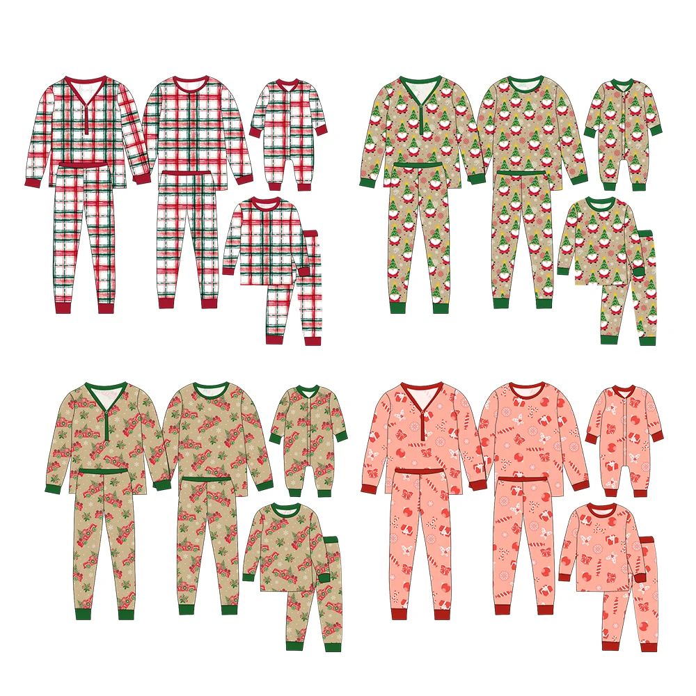 Soft & Breathable Bamboo Family Matching Christmas Print Long-Sleeve Button-Zip Pajama Sets for Christmas Season
