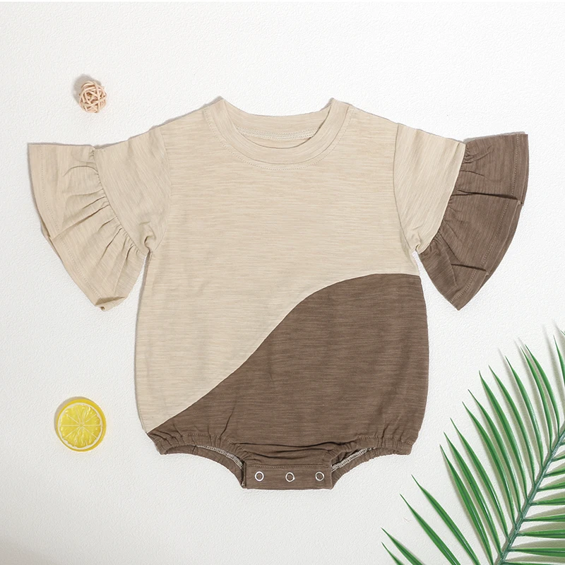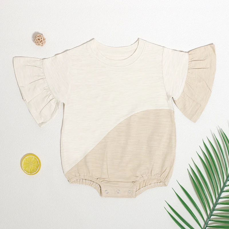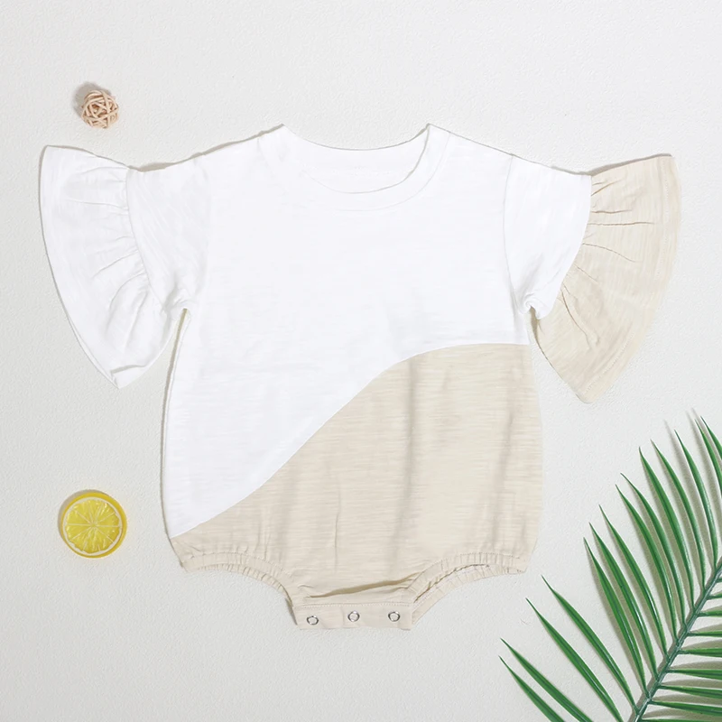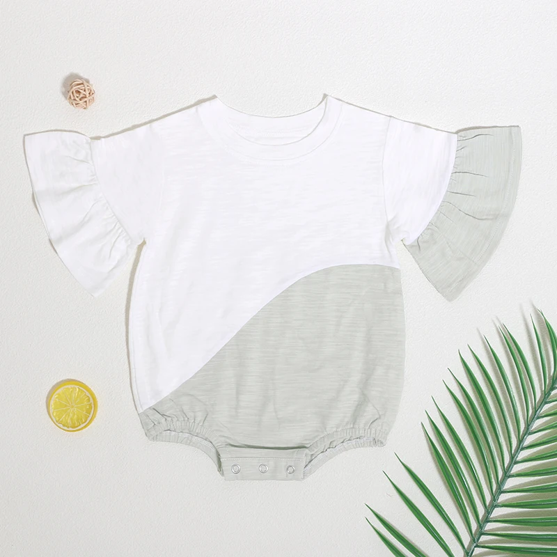 New Model Custom Logo Summer Infant Jumpsuit With Snap Button Color Ruffle Design Short Sleeve Toddler Baby Rompers