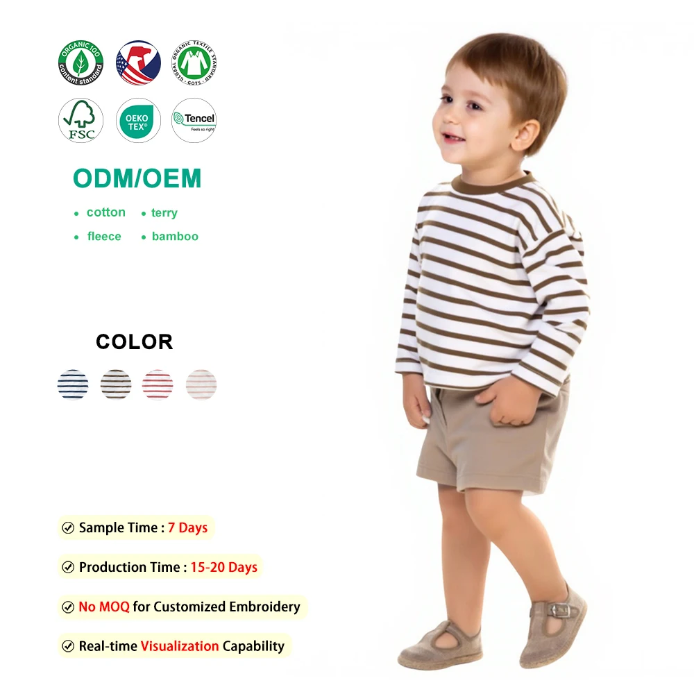 Children's Long Sleeve Top Apparel Customizable 230g Cotton Basic Shirt Layering Tee Plain Colors OEM