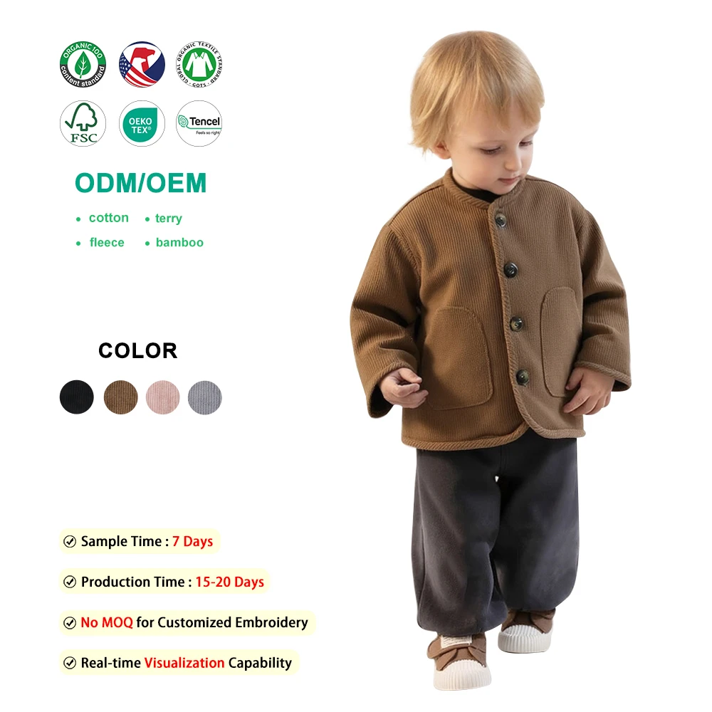 Soft 100%Cotton Toddler Girls' Corduroy Round Neck Button-Front Patch Pocket Jacket for Spring Fall Daily