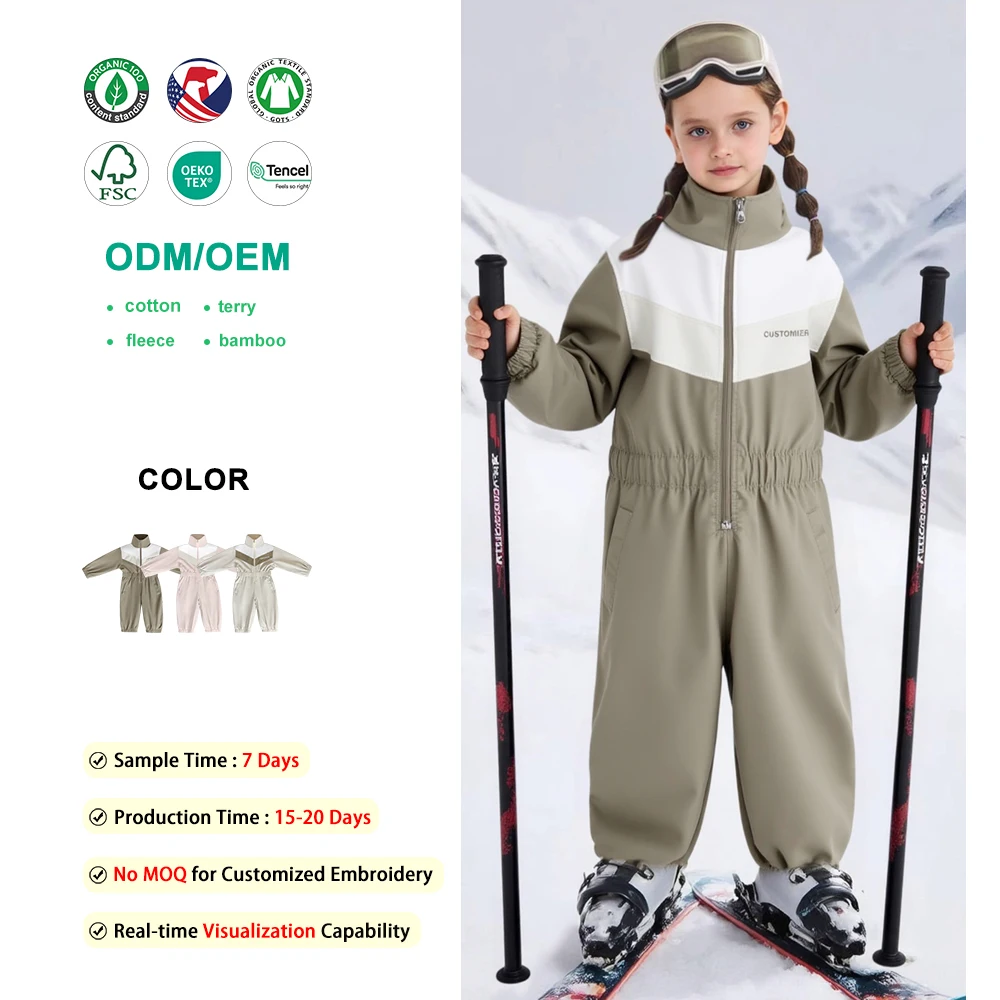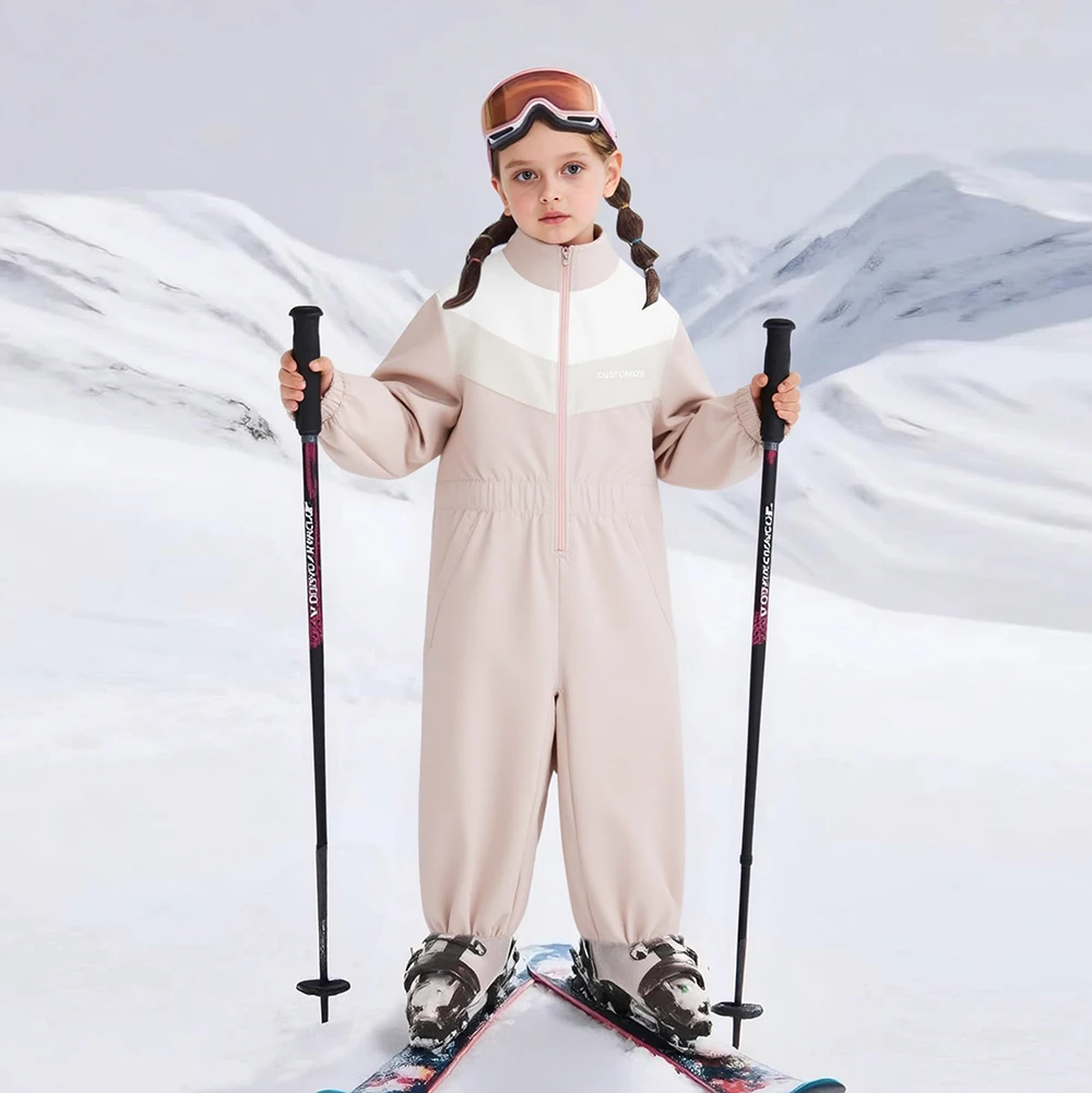 100%Polyester Toddler Color-Block Windproof Waterproof Snowsuit for Winter Skiing Outdoor