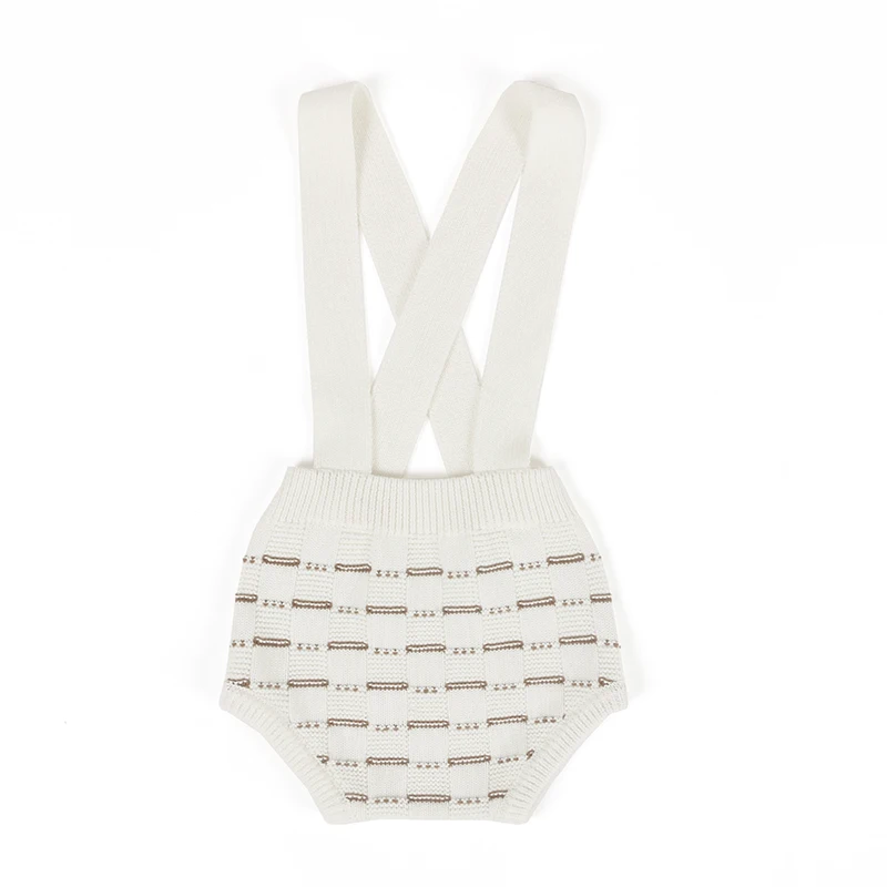Skin-Friendly 100% Cotton Infant Knitted Suspender Rompers with Grid Pattern & Bloomer-Style for Daily Wear & Spring/Fall
