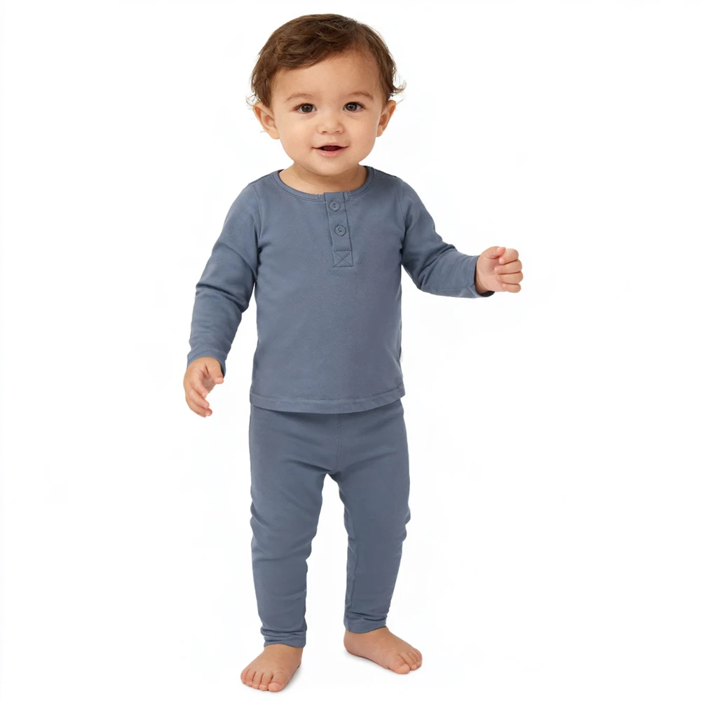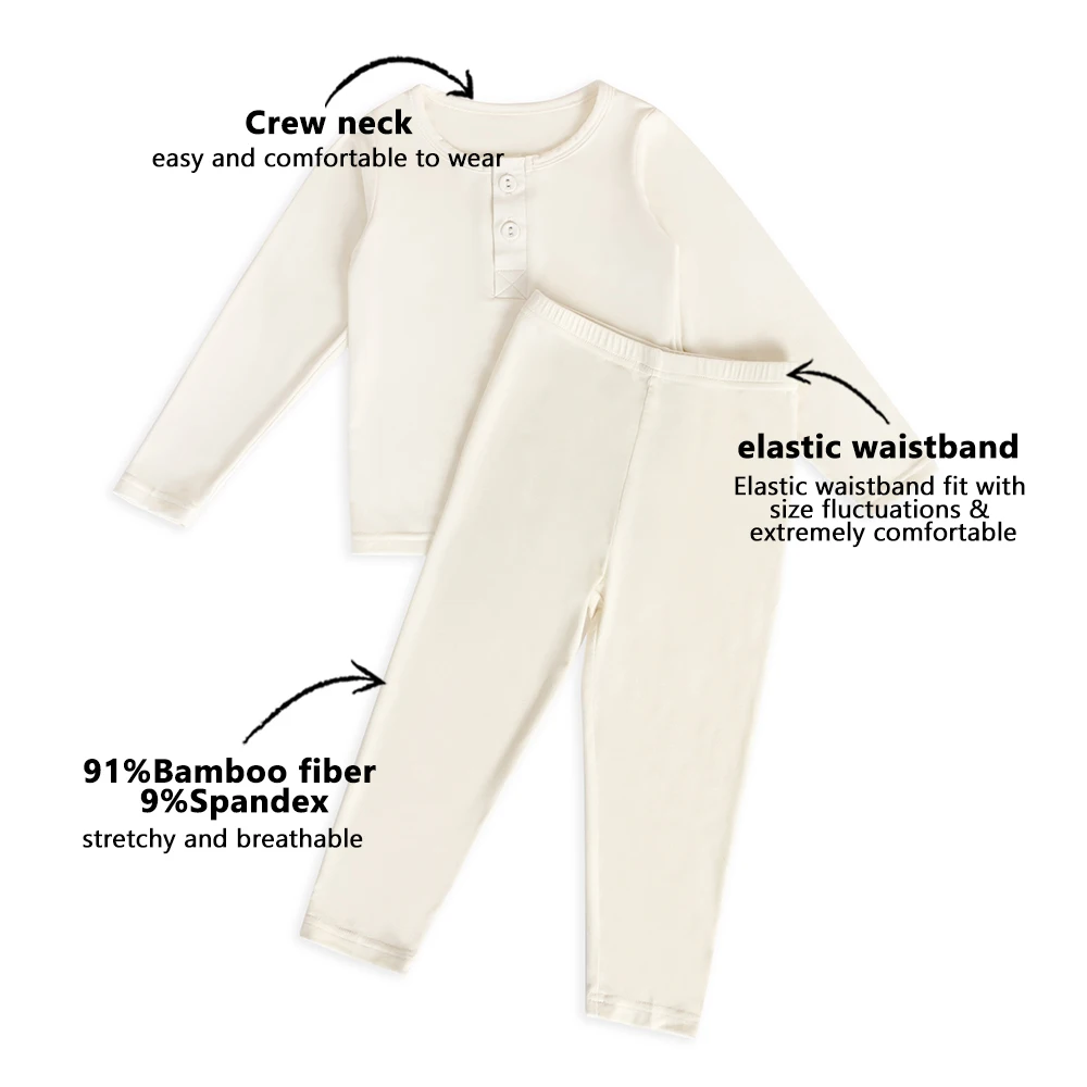 Wholesale Custom Bamboo Kids Children Girls Boy Clothes Solid Color Long Sleeved Children Winter Bamboo Pajamas Set