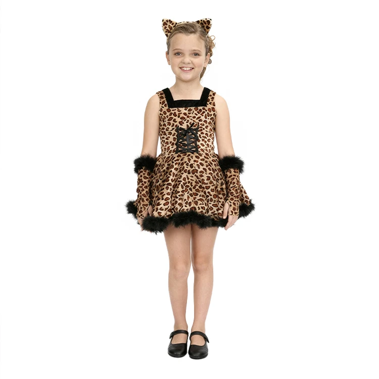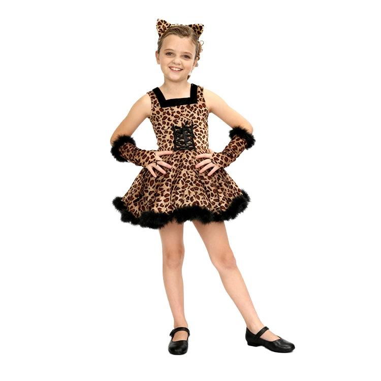 Factory Made Girls Leopard Cat Cosplay Outfit Plush Polyester Unique Lace Design Birthday Party Animal Role Play Children's
