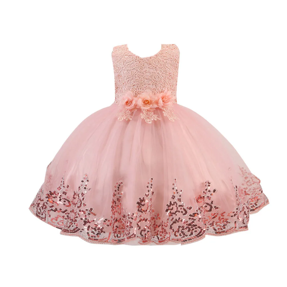 Solid Color Polyester Sleeveless Bow Mesh Kids Princess Dress Embroidered Lace Decorated Knee-Length Girls Summer Evening Dress