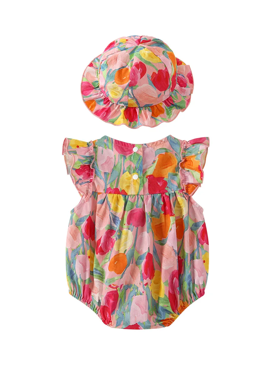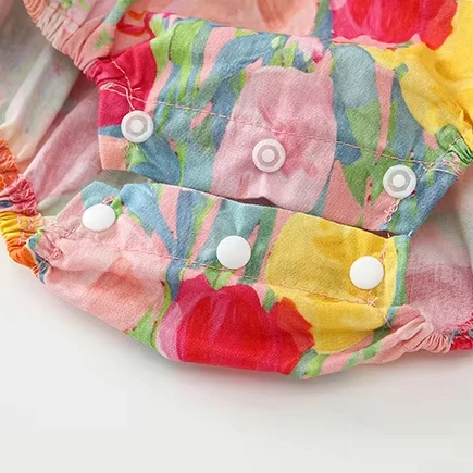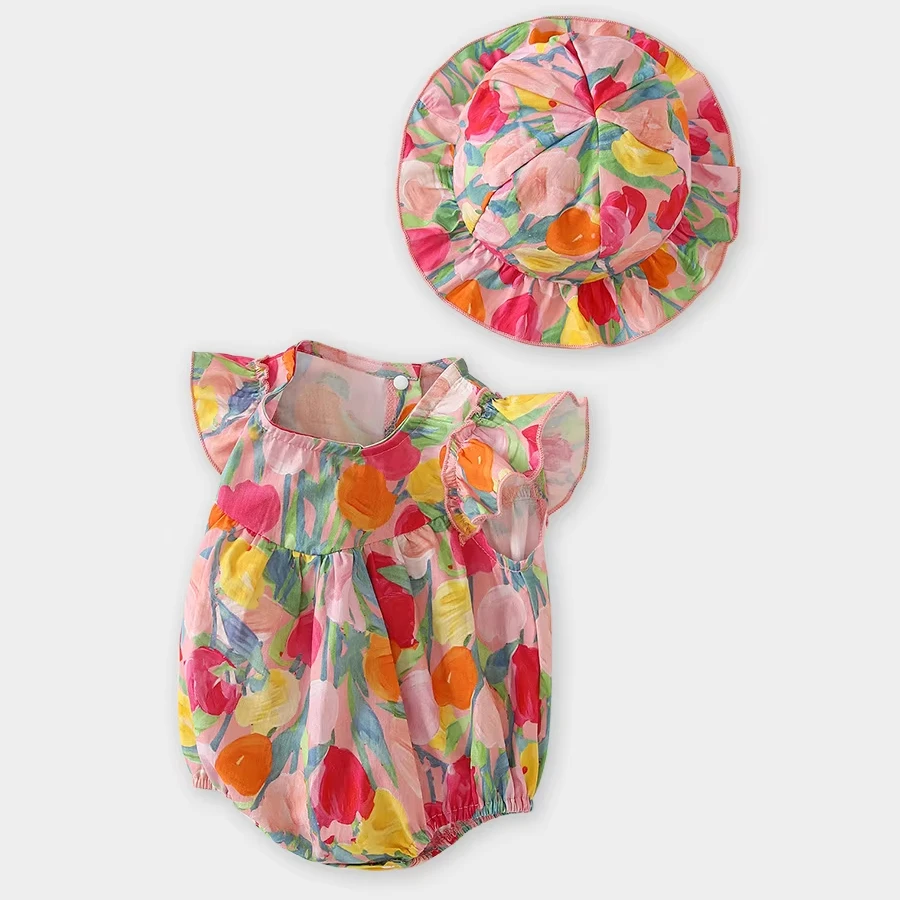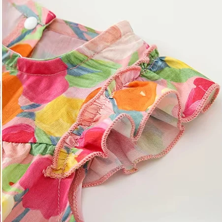 Summer Sweet Princess Baby Girls Cotton Ruffle Sleeve Romper 3D Tulip Printed Dress O-Neck Collar Sequined Decoration