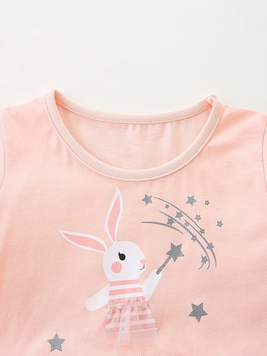 Girls Two Piece Outfit Customizable Cute T Shirt with 3D Bear Embroidery and Lace Trim Skirt Summer Apparel