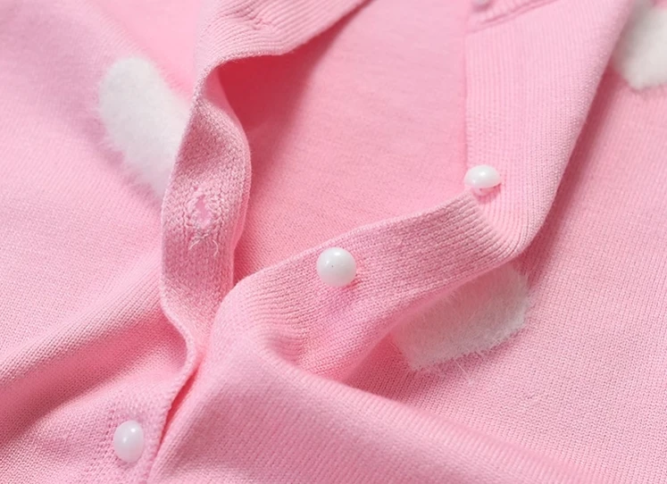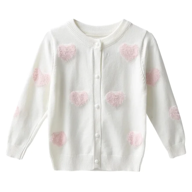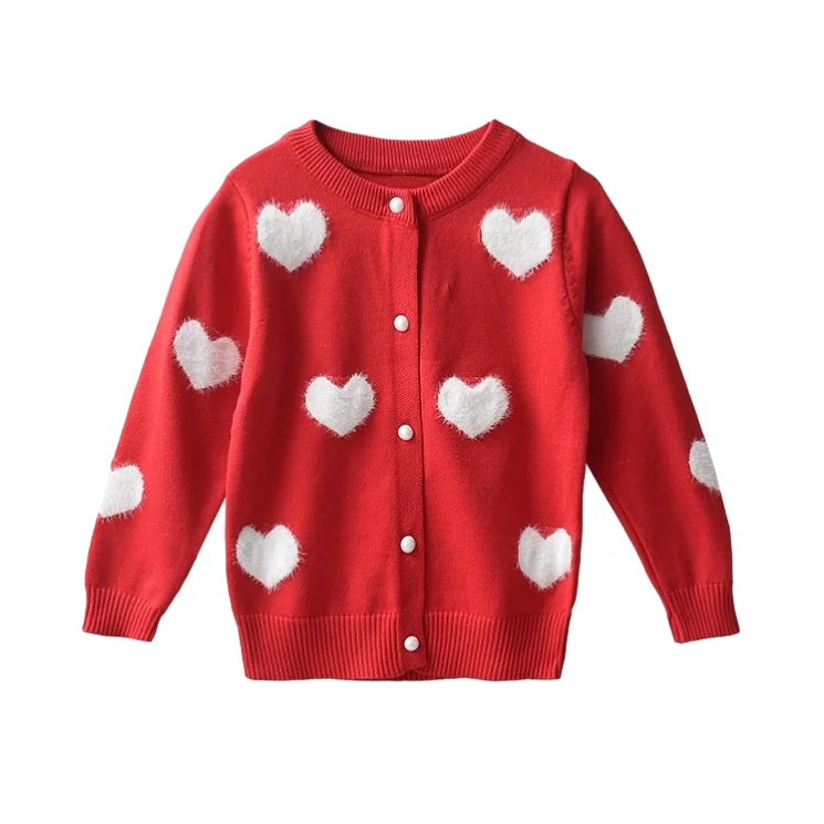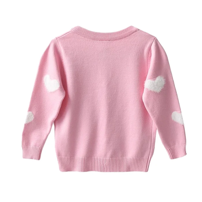 Customizable Winter Love Flocking O-neck Knitted Girls Sweaters Coats Single Button Cute Long Sleeve Kids Sweaters