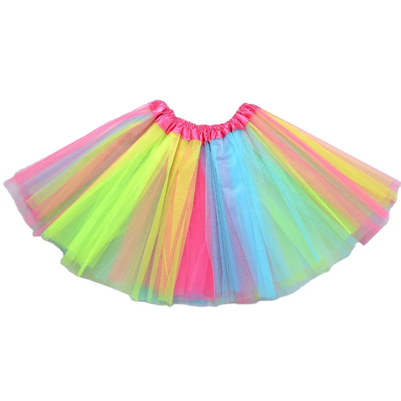 Customizable Best Selling Rainbow Color Girl Tulle Skirt Custom Logo Summer A-Line Dance Girls Skirts
