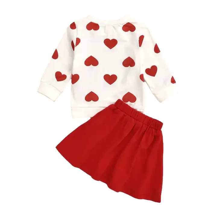 OEM Customized Long Sleeve T-shirt Skirt Suit for Girl Red Cotton Two Piece Kids Clothing Set for 2-14 Years