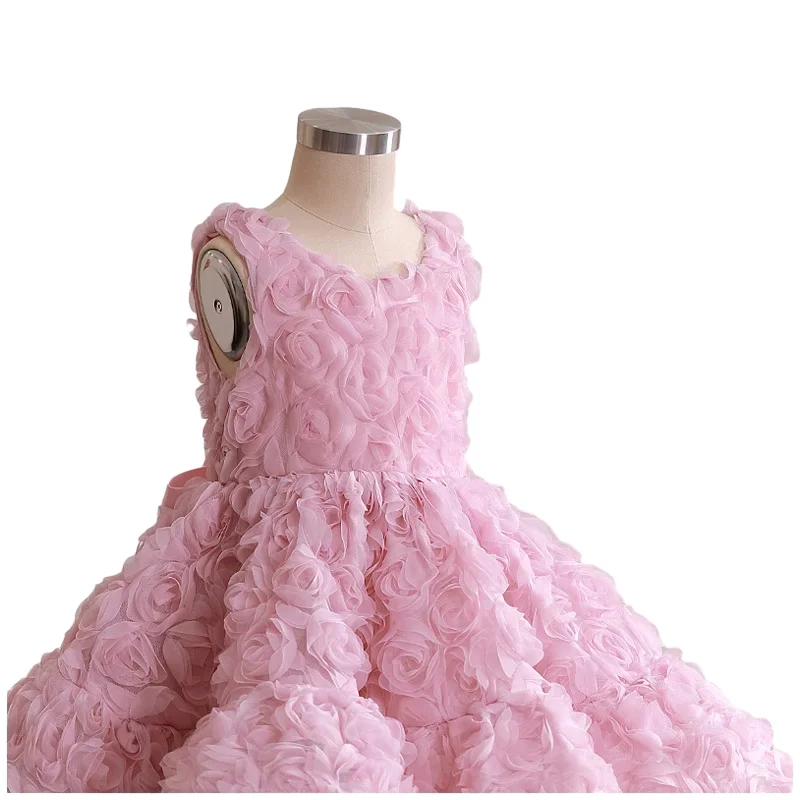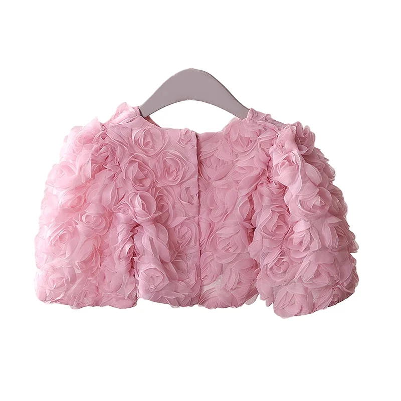 Customizable High Luxury Winter Girls Clothing Set Flower Girls Coats Sleeveless Pink Ball Grown Party Dresses Two Pieces Sets