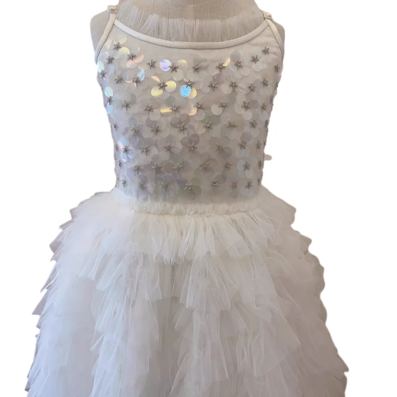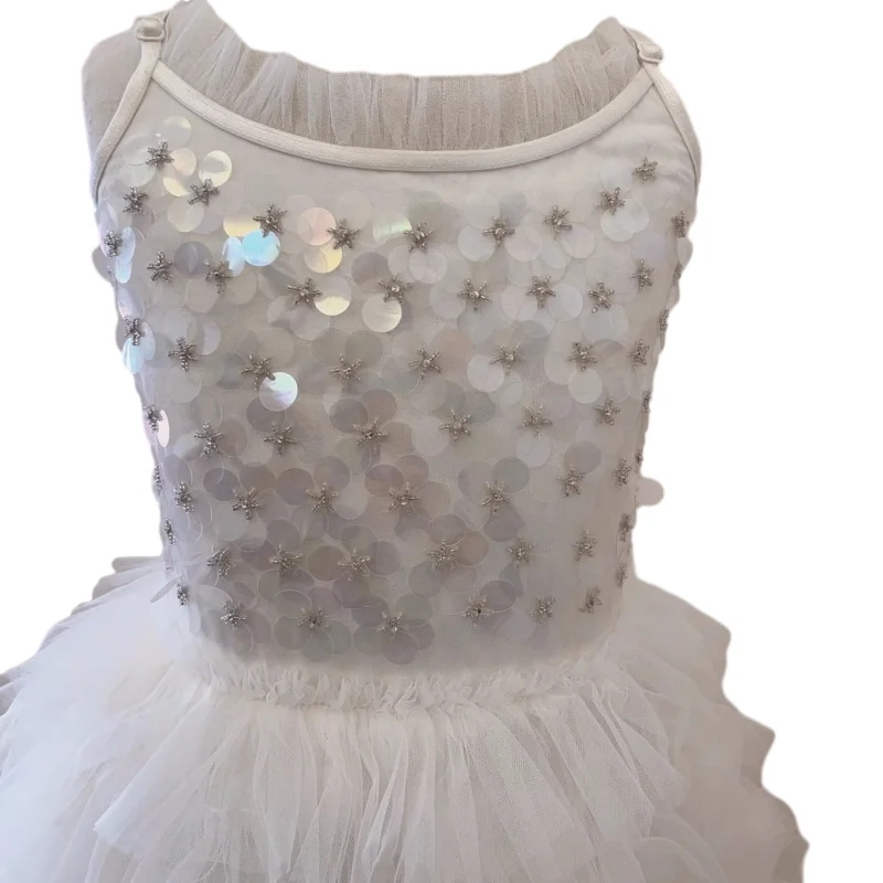 Customizable New Design Summer Sequined Tulle Girls Dresses Sleeveless Off-shoulder Cake Princess Dress