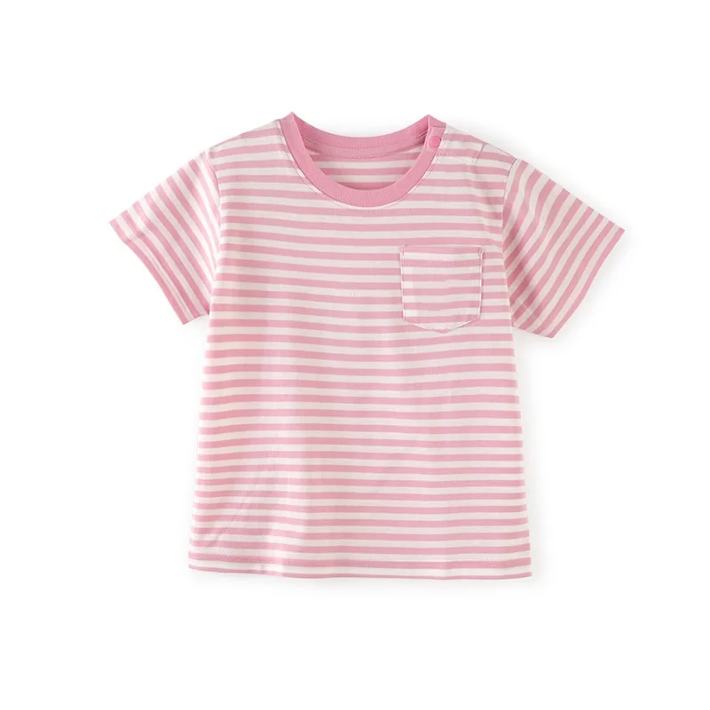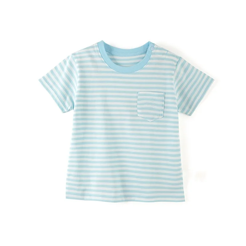 Good Quality Customization Summer 100% Cotton Boys T-shirts Striped Carton Embroidery Short Sleeve Children T-shirts