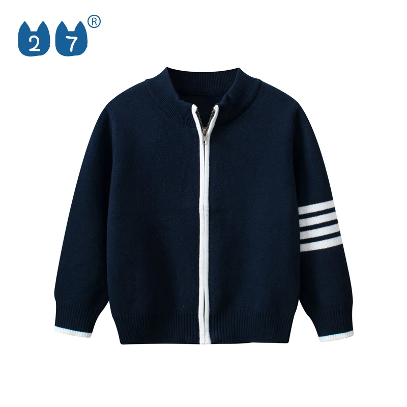 Spring and Autumn Fashion Boy'S Solid Color Zipper Simple Cardigan Breathable Sweater