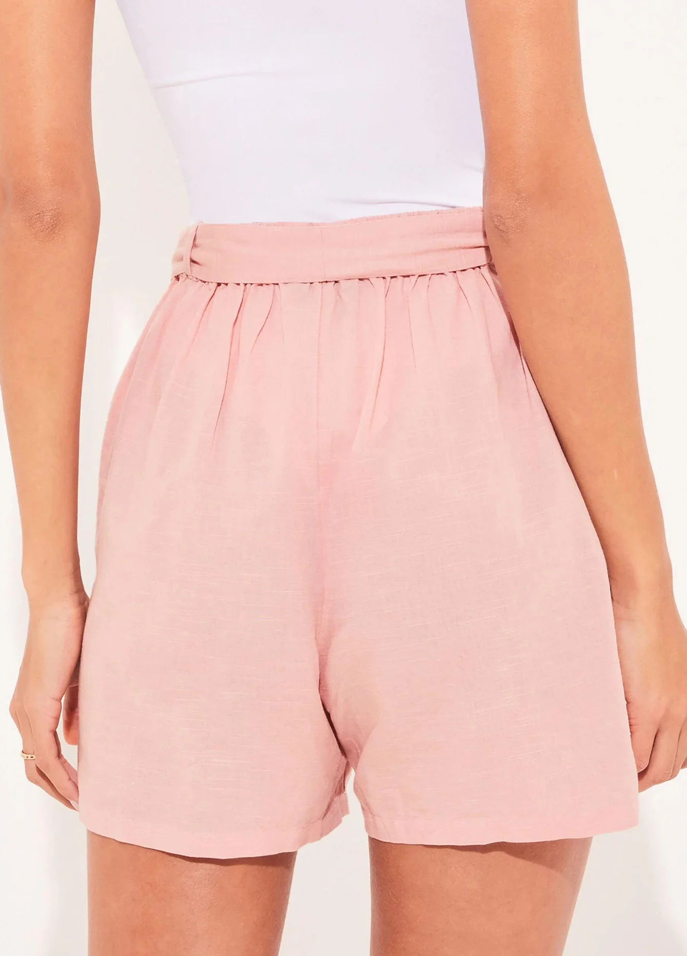 2026 Summer Casual High Waist Shorts Pink Washed Cotton Elastic Waist Mid Loose Hot Shorts