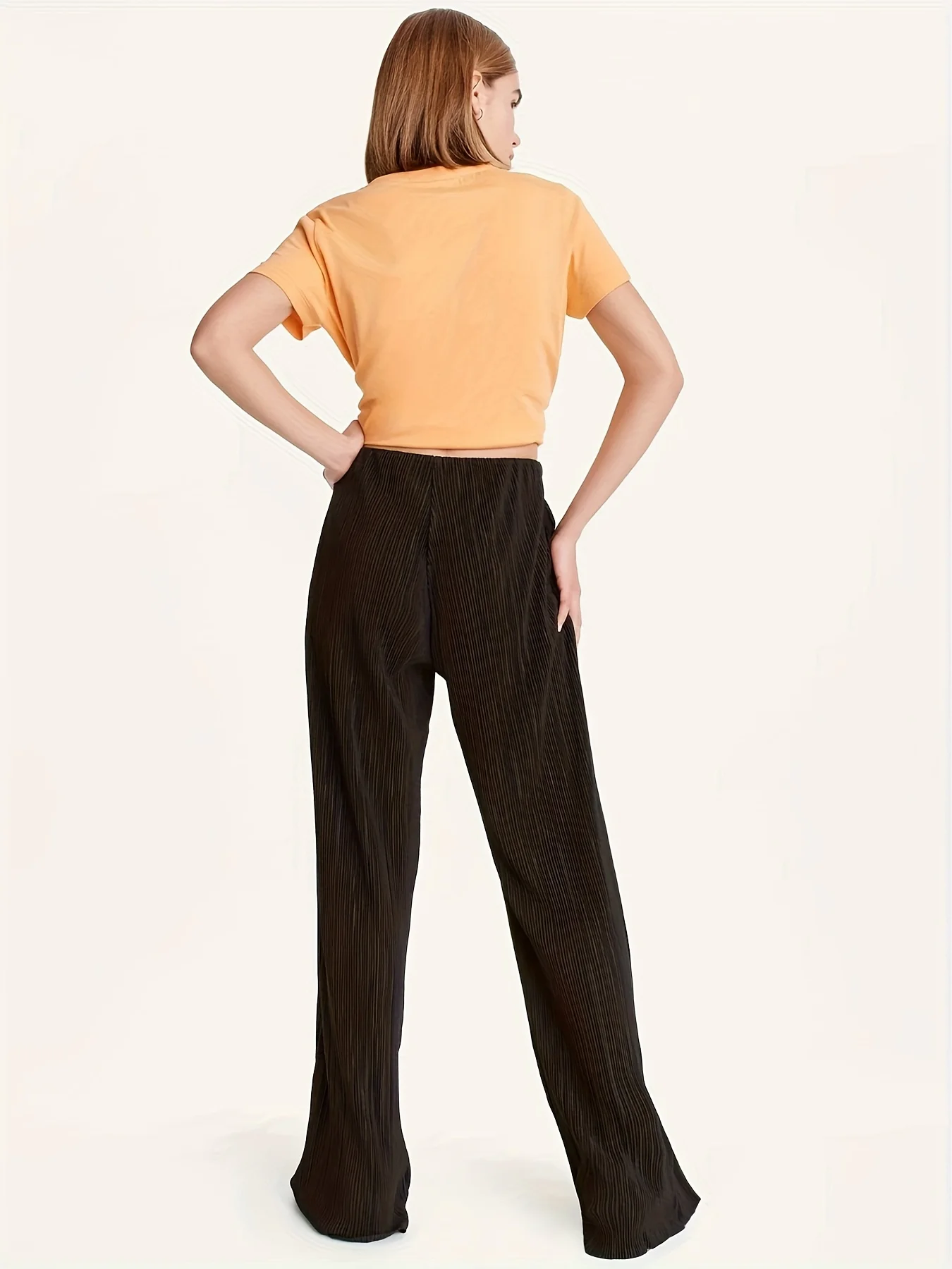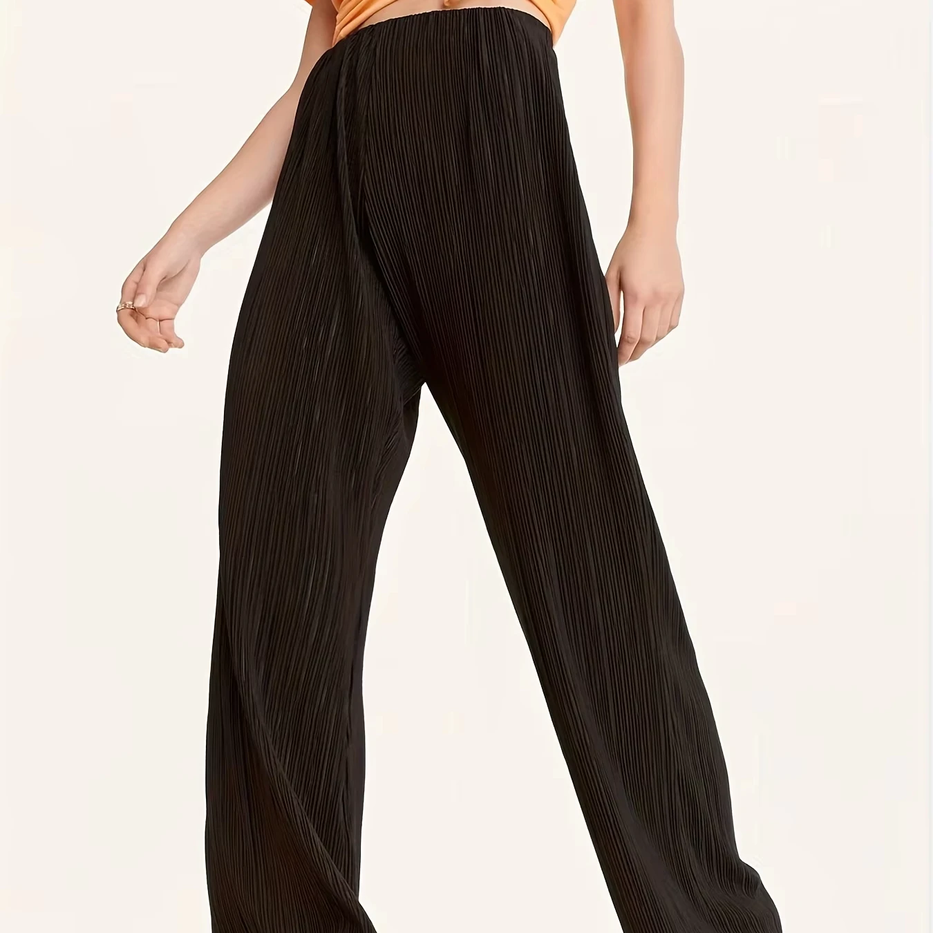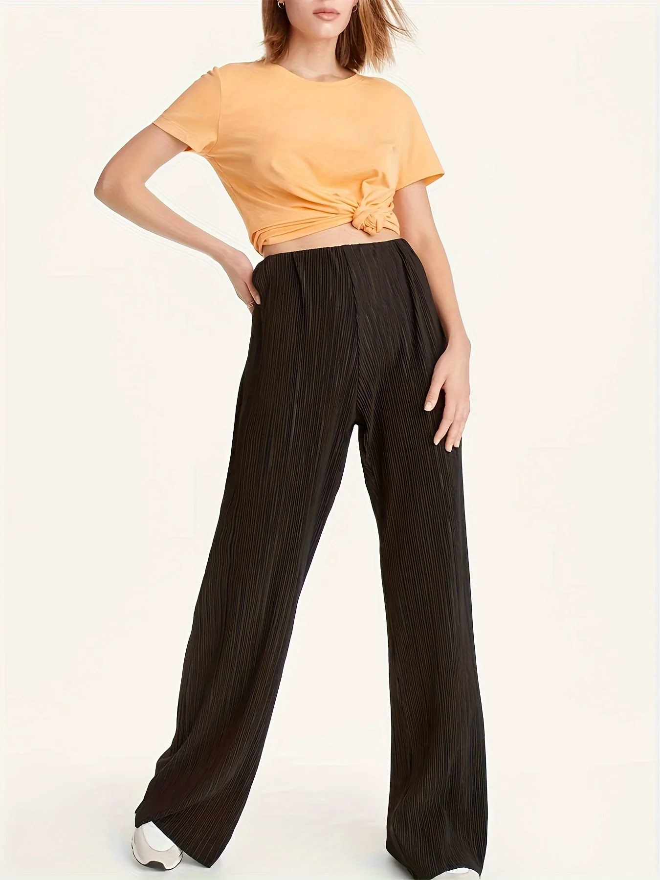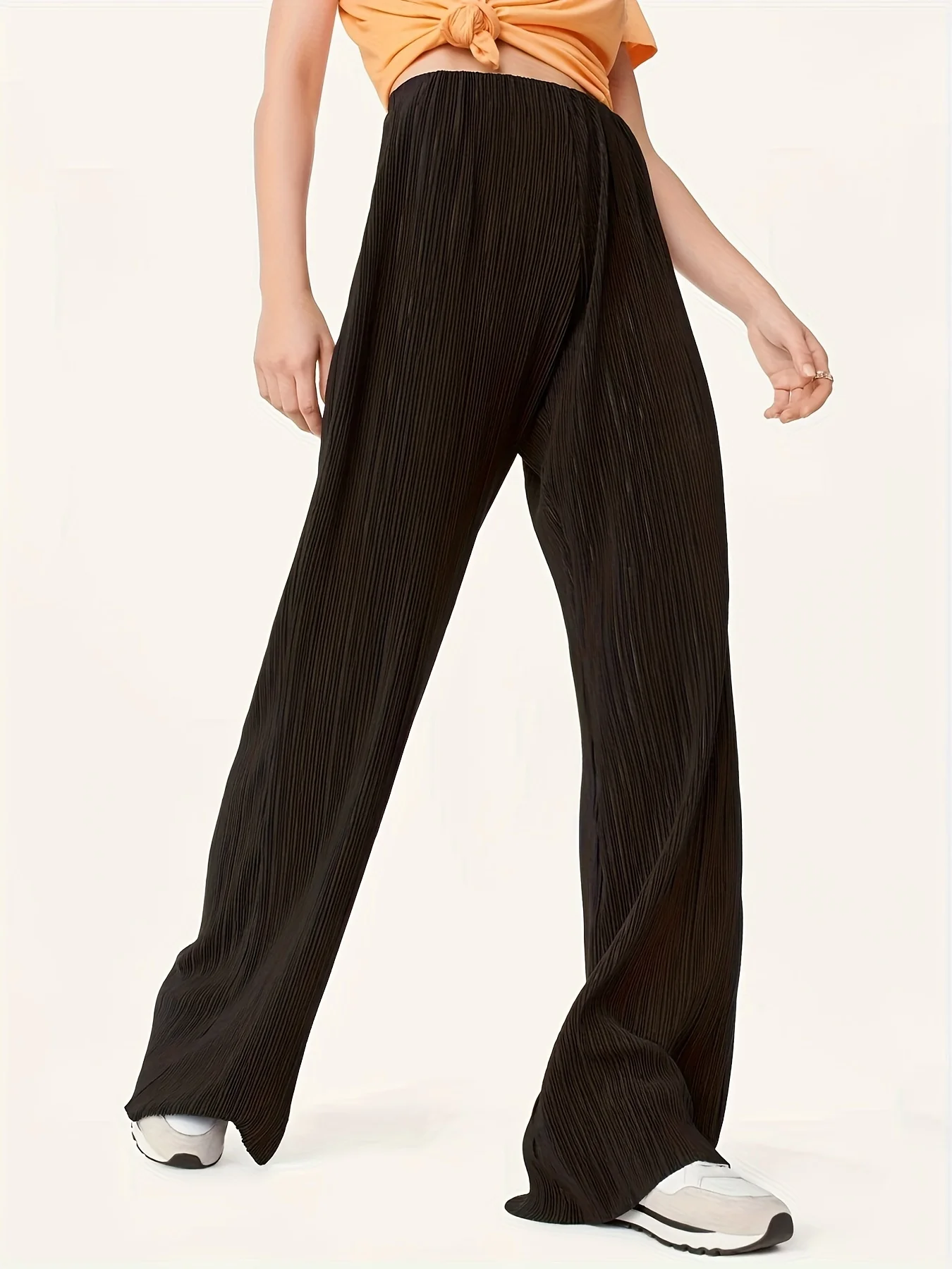 New Women's Solid Color High Waist Pleated Flared Trousers Loose Fit Summer Casual Trousers with Wide Leg and Elastic Waist