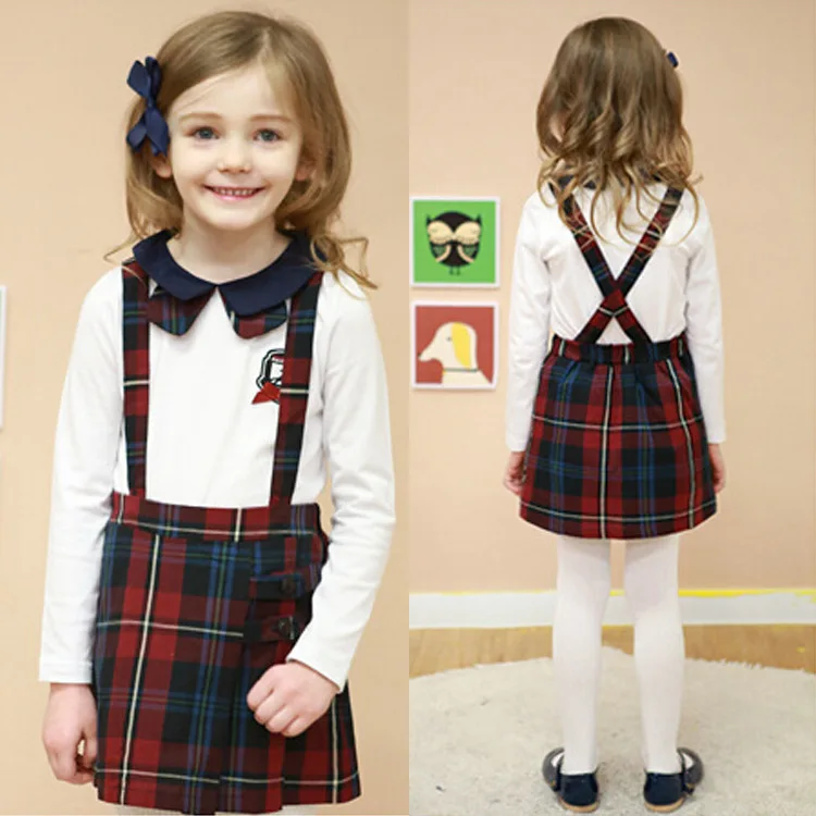 Spring New Girls' British Style Top and Plaid Skirt Suit Children's Cross-Border School Uniform
