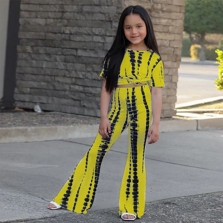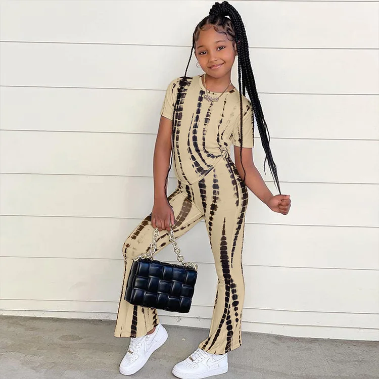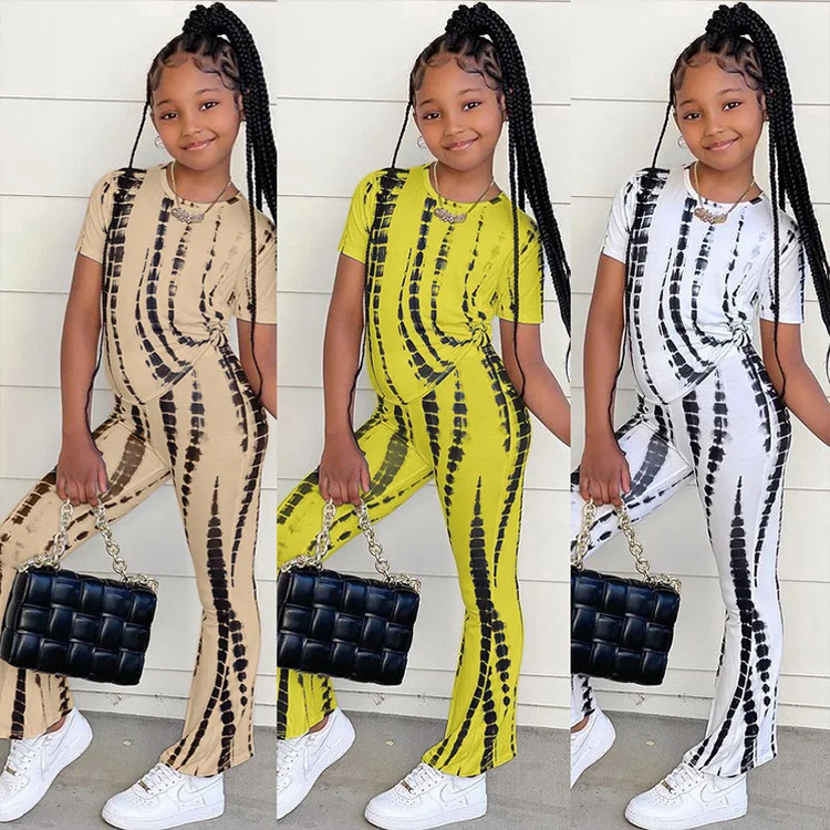 Fashion Popular Ins Style Girls Clothing Sets Tie-Dye Printed Short Sleeve 2 Piece Suit for 1-7 Years Clothes for Kids